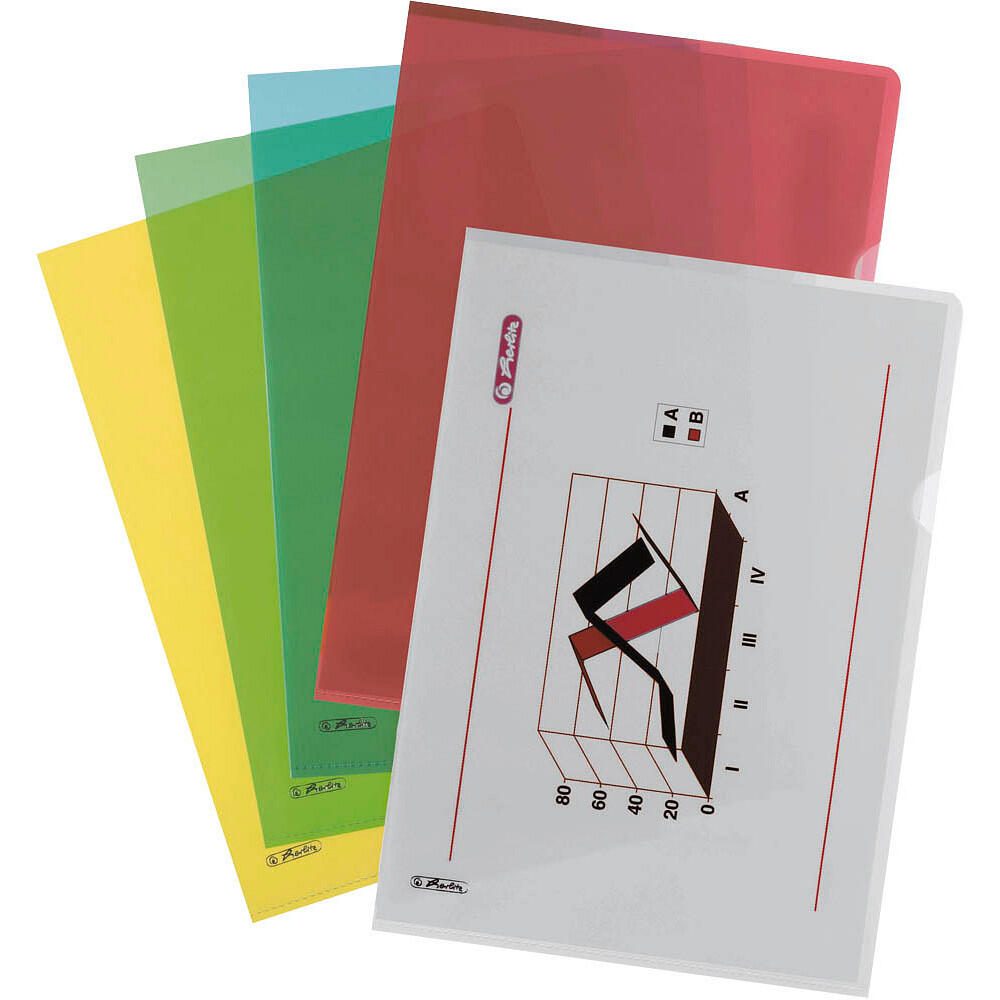 herlitz Sichthüllen DIN A4 farbsortiert genarbt 0,19 mm - 10 Stück