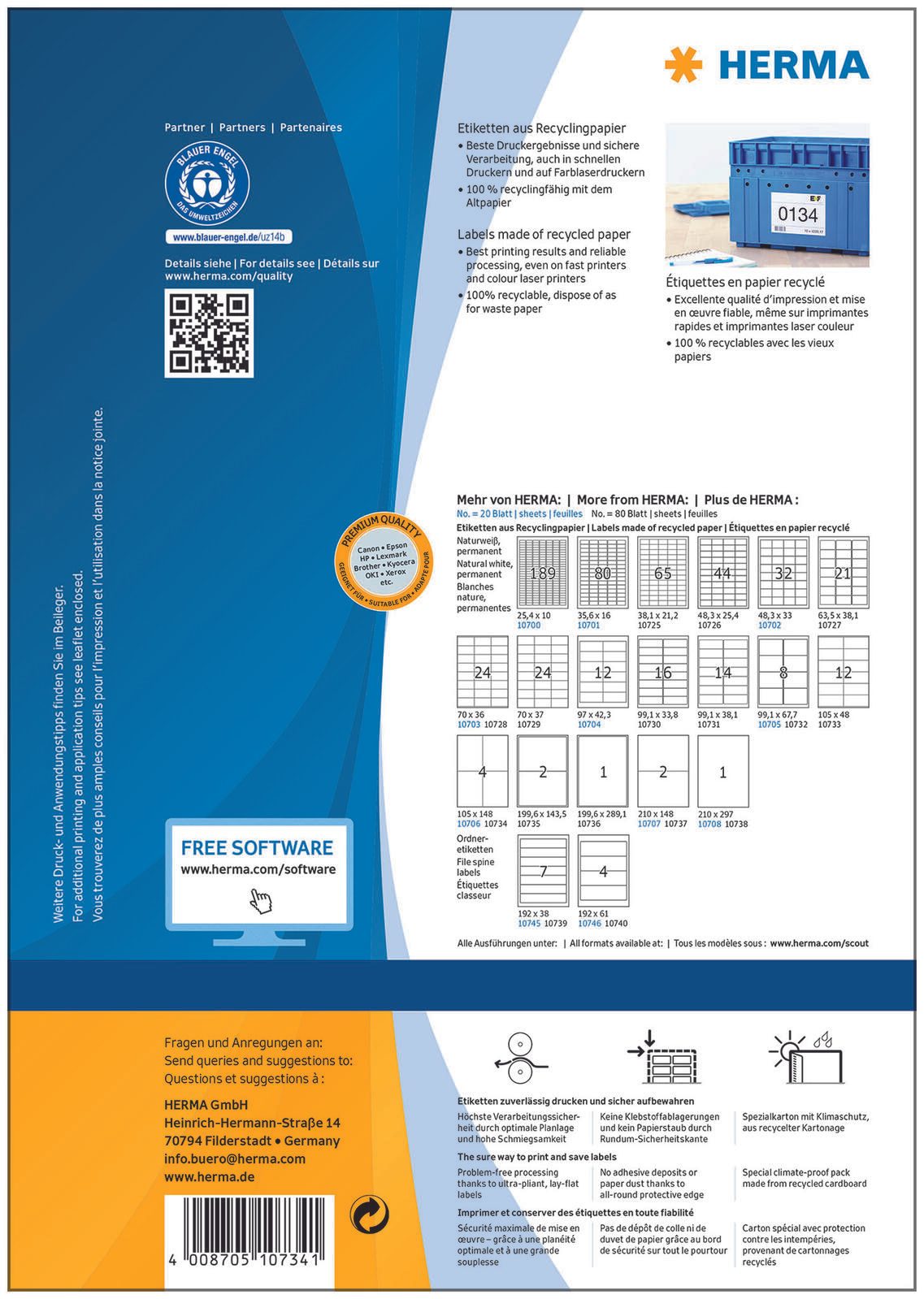 Die HERMA Etiketten 10734 in klassischem Weiß sind die ideale Lösung für all deine Beschriftungsbedürfnisse. Mit einer großzügigen Etikettengröße von 105,0 x 148,0 mm bieten sie genügend Platz für Texte, Grafiken oder Barcodes, die du für deine persönlichen oder geschäftlichen Anwendungen benötigst. Diese rechteckigen Etiketten sind nicht nur vielseitig einsetzbar, sondern auch von höchster Qualität. Jedes Blatt enthält 80 Etiketten, die sich mühelos von der Trägerfolie abziehen lassen, ohne zu reißen oder zu kleben. Die hervorragende Haftkraft garantiert, dass die Etiketten auf nahezu allen Oberflächen haften, sei es Papier, Karton oder Kunststoff. Die HERMA Etiketten sind perfekt für den Einsatz im Büro, zu Hause oder bei Veranstaltungen. Ob für die Organisation von Dokumenten, das Beschriften von Geschenken oder das Erstellen von Etiketten für Produkte – die Anwendungsmöglichkeiten sind nahezu unbegrenzt. Die hohe Druckqualität sorgt dafür, dass deine Beschriftungen klar und professionell aussehen, egal ob du einen Tintenstrahldrucker oder einen Laserdrucker verwendest. Mit der Bezeichnung Herma Etiketten RC 105x148cm sind diese Etiketten nicht nur praktisch, sondern auch eine kosteneffiziente Wahl für alle, die Wert auf Qualität und Zuverlässigkeit legen. Die einfache Handhabung und die Flexibilität in der Anwendung machen die HERMA Etiketten 10734 zu einem unverzichtbaren Werkzeug für jeden Haushalt oder jedes Büro.Technische Daten