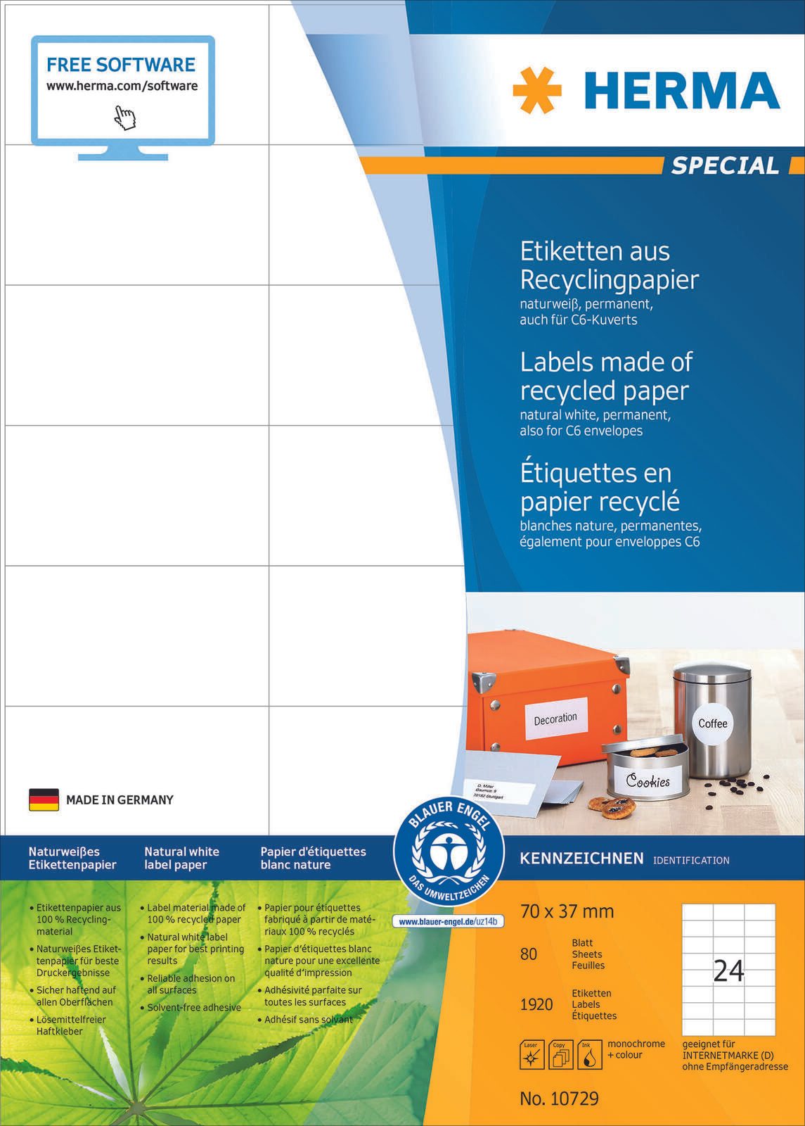 HERMA Etiketten 10729 weiß 70,0 x 37,0 mm