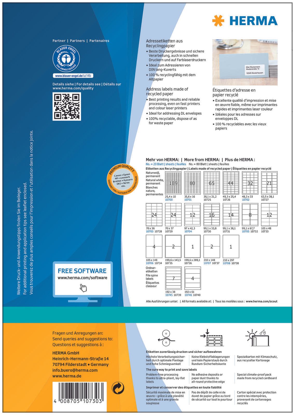 Die HERMA Etiketten sind nicht nur funktional, sondern auch ästhetisch ansprechend. Das schlichte Weiß fügt sich harmonisch in jede Umgebung ein und sorgt dafür, dass deine Informationen klar und deutlich zur Geltung kommen. Egal, ob du sie für Adressaufkleber, Preisetiketten oder zur Kennzeichnung von Ordnern verwendest, die HERMA Etiketten 10730 sind die perfekte Wahl.
