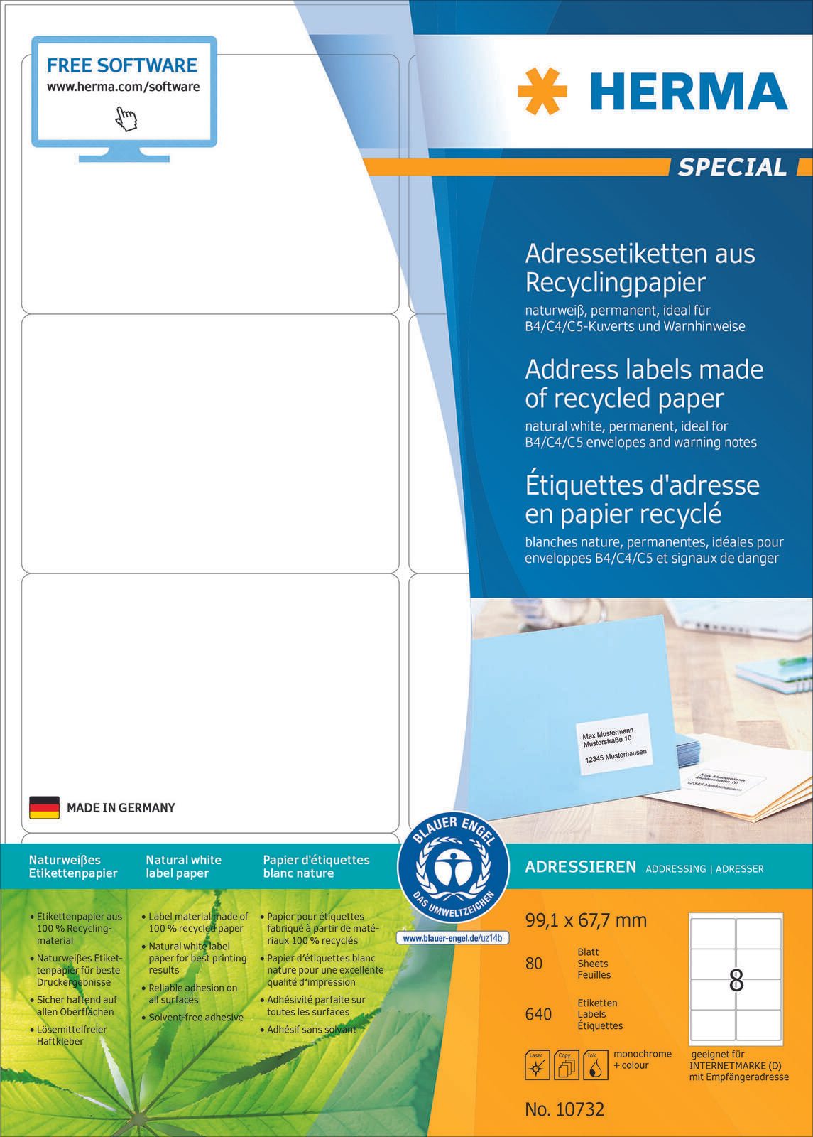 HERMA Etiketten 10732 weiß 99,1 x 67,7 mm