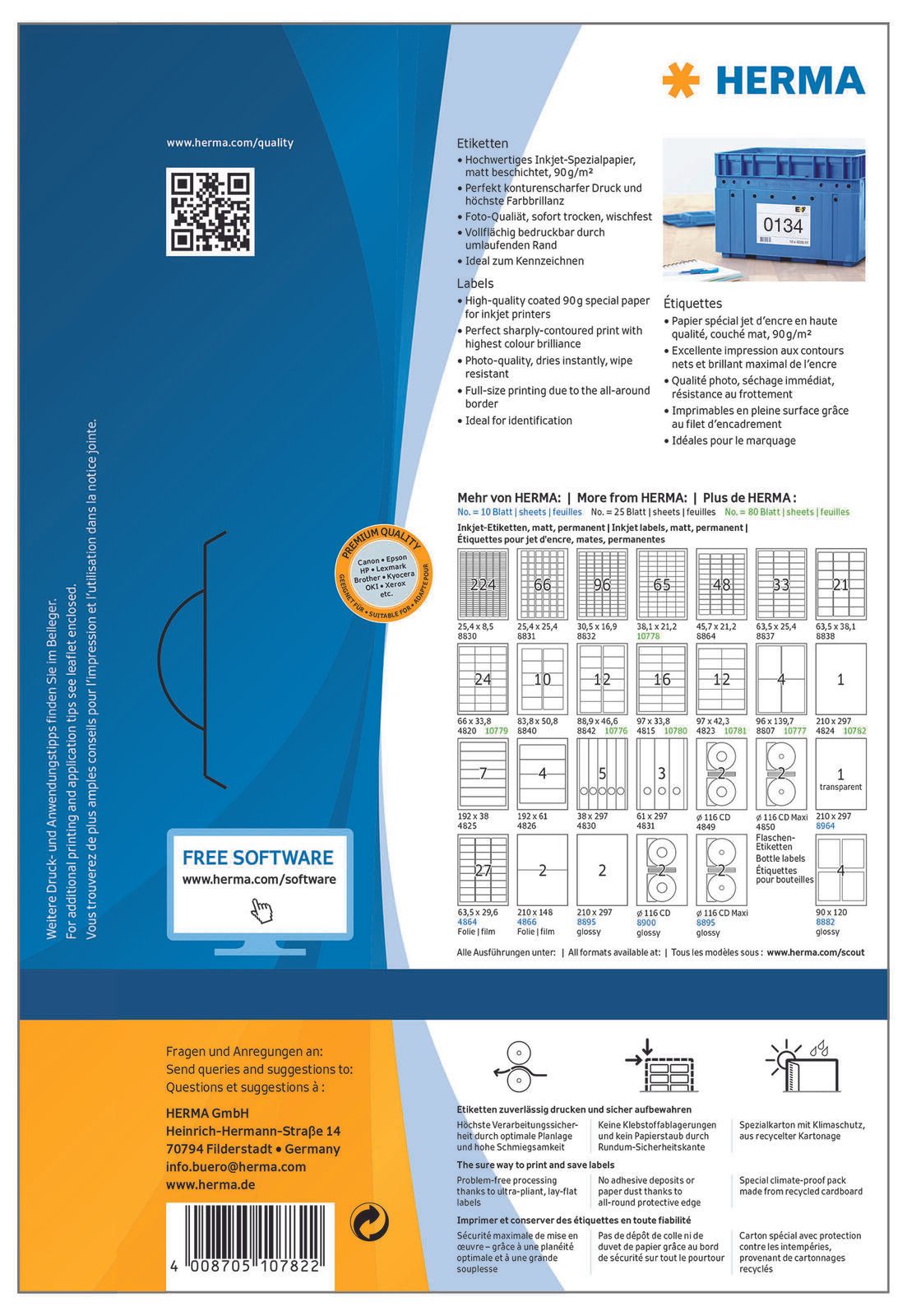 Ein Pack enthält 80 Blatt, was dir eine große Menge an Etiketten für verschiedene Anwendungen bietet. Die hochwertige Verarbeitung der HERMA Etiketten garantiert eine ausgezeichnete Druckqualität, sodass deine Texte und Bilder klar und deutlich zur Geltung kommen. Dank der speziellen Beschichtung sind die Etiketten für Inkjet-Drucker optimiert, was bedeutet, dass du brillante Farben und gestochen scharfe Schriftzüge erwarten kannst.