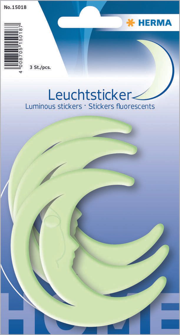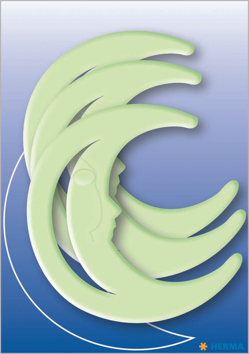 Der HERMA Leuchtaufkleber Mond ist eine innovative und dekorative Lösung, um Ihre Räume mit einem Hauch von Magie zu bereichern. In jedem Pack erhalten Sie drei selbstklebende Aufkleber aus hochwertigem Kunststoff, die in einem strahlenden leuchtgrün erstrahlen. Diese Aufkleber sind nicht nur optisch ansprechend, sondern auch äußerst funktional. Sie können einfach auf verschiedenen Trägermaterialien angebracht werden und verleihen jedem Raum ein gemütliches und beruhigendes Ambiente. Das Motiv des Mondes ist besonders beliebt und bringt eine traumhafte Atmosphäre in Kinderzimmer oder Wohnräume. Die leuchtenden Farben sorgen dafür, dass die Aufkleber auch im Dunkeln sichtbar sind und schaffen so eine beruhigende Umgebung, die besonders für Kinder von Vorteil ist. Die Verwendung von selbstklebendem Material ermöglicht eine einfache Anbringung und Entfernung, ohne Rückstände zu hinterlassen. Die HERMA Leuchtaufkleber sind vielseitig einsetzbar. Ob zur Dekoration von Wänden, Möbeln oder anderen Oberflächen, sie bieten zahlreiche kreative Möglichkeiten, um Ihre persönliche Note in jedem Raum auszudrücken. Darüber hinaus sind sie eine ideale Wahl für Kinder, die sich vor der Dunkelheit fürchten, da das sanfte Licht des Mondes eine beruhigende Wirkung hat und Vertrauen schafft. Mit ihrer ansprechenden Farbgebung und dem charmanten Design sind die HERMA Leuchtaufkleber nicht nur funktional, sondern auch ein echter Blickfang. Sie sind die perfekte Ergänzung für jedes Zuhause, das eine warme und einladende Atmosphäre schaffen möchte. Lassen Sie sich von der Magie des Mondes verzaubern und genießen Sie die beruhigende Wirkung dieser einzigartigen Aufkleber.Technische Daten