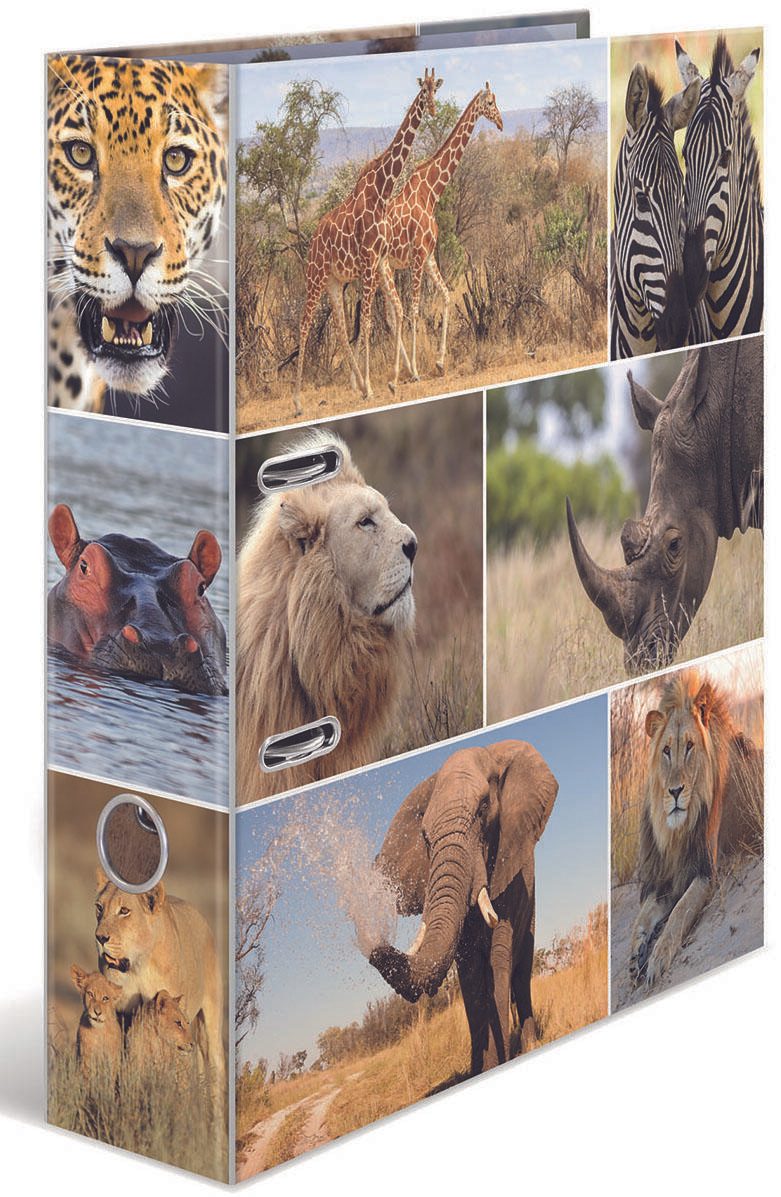 Der HERMA Motivordner mit einer Rückenbreite von 7 cm ist die ideale Lösung für die ordentliche Ablage deiner Dokumente im DIN A4 Format. Dieser Ordner aus hochwertigem Karton beeindruckt nicht nur durch seine Funktionalität, sondern auch durch sein einzigartiges Design mit dem Motiv "Afrika Tiere". Die glatte Optik verleiht dem Ordner einen ansprechenden Look, der in jedem Büro oder Zuhause zum Blickfang wird. Die durchdachte Hebelmechanik sorgt für eine einfache Handhabung und ermöglicht ein müheloses Einlegen sowie Entnehmen von Unterlagen. Mit dem praktischen Griffloch kannst du den Ordner bequem aus Regalen oder Schubladen ziehen, was dir den Alltag erleichtert. Zudem ist der Ordner mit Raumsparschlitzen ausgestattet, die eine platzsparende Aufbewahrung ermöglichen und gleichzeitig dafür sorgen, dass deine Dokumente stets sicher an ihrem Platz bleiben. Der HERMA Motivordner ist nicht nur funktional, sondern auch ein echtes Highlight für alle, die ihre Unterlagen mit Stil organisieren möchten. Ob im Büro, in der Schule oder zu Hause, dieser Ordner bietet ausreichend Platz für deine wichtigen Papiere und sorgt dafür, dass alles ordentlich und übersichtlich bleibt. Der Rücken von 7 cm bietet genügend Stauraum, während das ansprechende Motiv die Kreativität und den individuellen Stil unterstreicht. Setze auf Qualität und Ästhetik mit dem HERMA Motivordner Afrika Tiere und genieße die Vorteile eines gut organisierten Arbeitsplatzes.Technische Daten