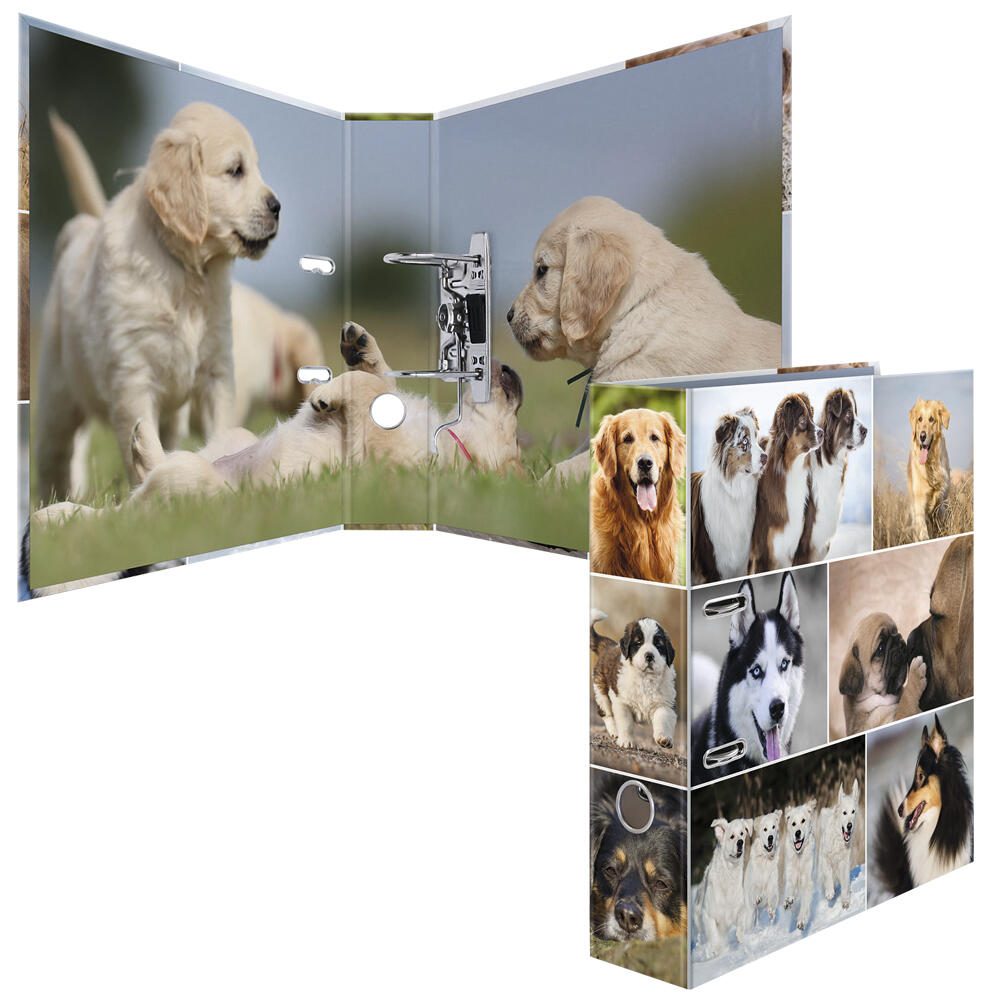 Der HERMA Motivordner mit einer Rückenbreite von 7 cm ist die ideale Lösung für die ordentliche Aufbewahrung deiner Dokumente im DIN A4 Format. Hergestellt aus hochwertigem Karton, bietet dieser Ordner nicht nur eine hohe Stabilität, sondern auch eine ansprechende Optik. Das Motiv mit süßen Hunden verleiht deinem Arbeitsplatz oder Regal eine persönliche Note und sorgt dafür, dass das Organisieren von Unterlagen gleich viel mehr Spaß macht. Die glatte Oberfläche des Ordners sorgt für eine angenehme Haptik und ist gleichzeitig pflegeleicht. Mit der praktischen Hebelmechanik kannst du deine Dokumente einfach einlegen und entnehmen, was dir Zeit und Mühe spart. Dank der durchdachten Raumsparschlitze ist der Ordner besonders platzsparend und passt problemlos in jedes Regal. Ein weiteres praktisches Detail ist das integrierte Griffloch, das dir das Herausnehmen des Ordners erleichtert. So hast du deine Unterlagen immer schnell zur Hand, ohne lange suchen zu müssen. Die Qualität und Funktionalität des HERMA Motivordners machen ihn zu einem unverzichtbaren Begleiter für Schule, Studium oder Büro. Mit dem HERMA Motivordner Hunde bringst du nicht nur Ordnung in deine Unterlagen, sondern auch einen Hauch von Freude in deinen Alltag. Egal, ob du wichtige Dokumente, Notizen oder kreative Ideen aufbewahren möchtest, dieser Ordner bietet dir die perfekte Lösung. Vertraue auf die Qualität von HERMA und genieße die Vorteile eines durchdachten Designs, das sowohl funktional als auch ästhetisch ansprechend ist.Technische Daten