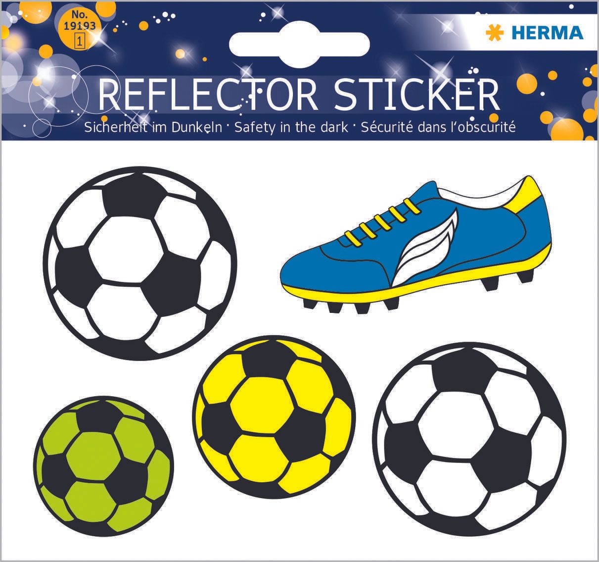 Die HERMA reflektierenden Aufkleber Ball sind eine kreative und praktische Lösung, um Ihre Gegenstände sicherer zu gestalten. Jedes Pack enthält fünf selbstklebende Etiketten, die in einem ansprechenden mehrfarbigen Ball-Motiv gestaltet sind. Diese Aufkleber sind aus hochwertiger Folie gefertigt und bieten nicht nur eine ansprechende Optik, sondern auch eine hervorragende Sichtbarkeit bei schlechten Lichtverhältnissen.