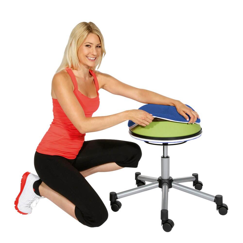 Der Topstar Hocker Sit.Half Ball in Blau vereint Design und Funktionalität in einem Produkt. Dieser Fitness-Hocker und Trainingsgerät in einem besteht aus einem luftgefüllten Halbball, der eine dreidimensional bewegliche Sitzfläche bietet. Die stufenlose Sitzhöhenverstellung mit Toplift und mechanischer Sitztiefenfederung sorgen für individuellen Sitzkomfort sowohl im Wohnzimmer als auch im Büro. Die Eigenschaften dieses Hockers sind vielfältig. Er ist drehbar, höhenverstellbar und mit Rollen ausgestattet, was eine flexible Nutzung ermöglicht. Die Sitzhöhe kann zwischen 53,0 und 66,0 cm variiert werden. Das Gestell besteht aus robustem Metall in Silber und verleiht dem Hocker Stabilität und Langlebigkeit. Der Bezug des Hockers besteht zu 100% aus Polyester, was eine hohe Scheuerfestigkeit von 30.000 Scheuertouren garantiert. Die Polsterung sorgt für einen angenehmen Sitzkomfort. Die Doppelrollen des Hockers eignen sich besonders für Teppichböden und ermöglichen ein müheloses Bewegen im Raum. Der Topstar Hocker Sit.Half Ball in Blau ist nicht nur ein funktionales Möbelstück, sondern auch ein optisches Highlight. Die Kombination aus der blauen Farbe des Sitzes und dem silbernen Fußkreuz verleiht ihm ein modernes und ansprechendes Design. Er ist die perfekte Wahl für alle, die Wert auf Komfort, Funktionalität und Ästhetik legen.Technische Daten