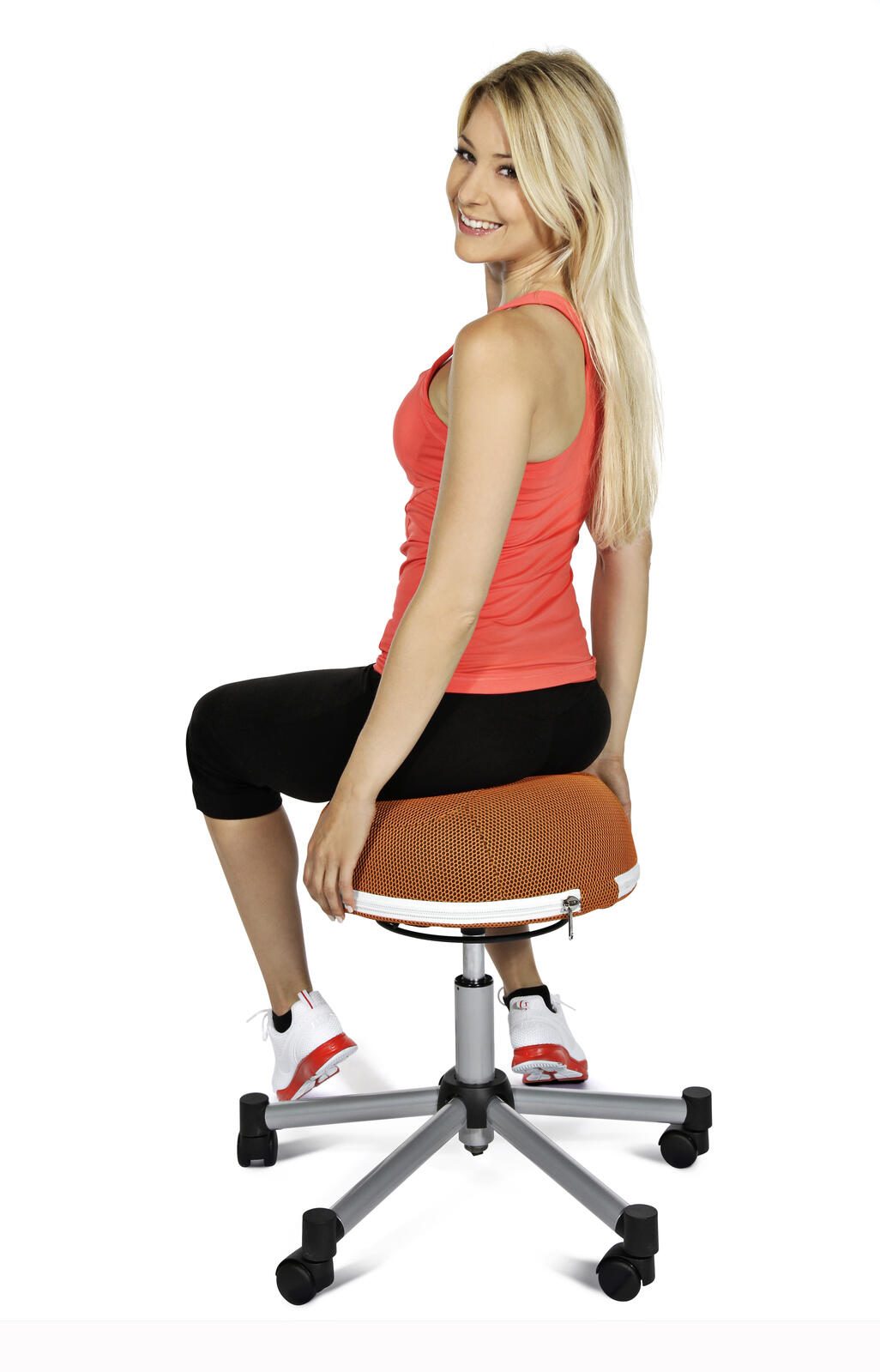 Mit einer Scheuerfestigkeit von 30.000 Scheuertouren ist dieser Ballsitz äußerst strapazierfähig und langlebig. Das Fußkreuzgestell besteht aus robustem Stahl, was für Stabilität und Standfestigkeit sorgt. Die Sitzneigung ist nicht verstellbar, aber die ergonomische Form und die hochwertige Polsterung des Sitzes bieten dennoch maximalen Komfort.
