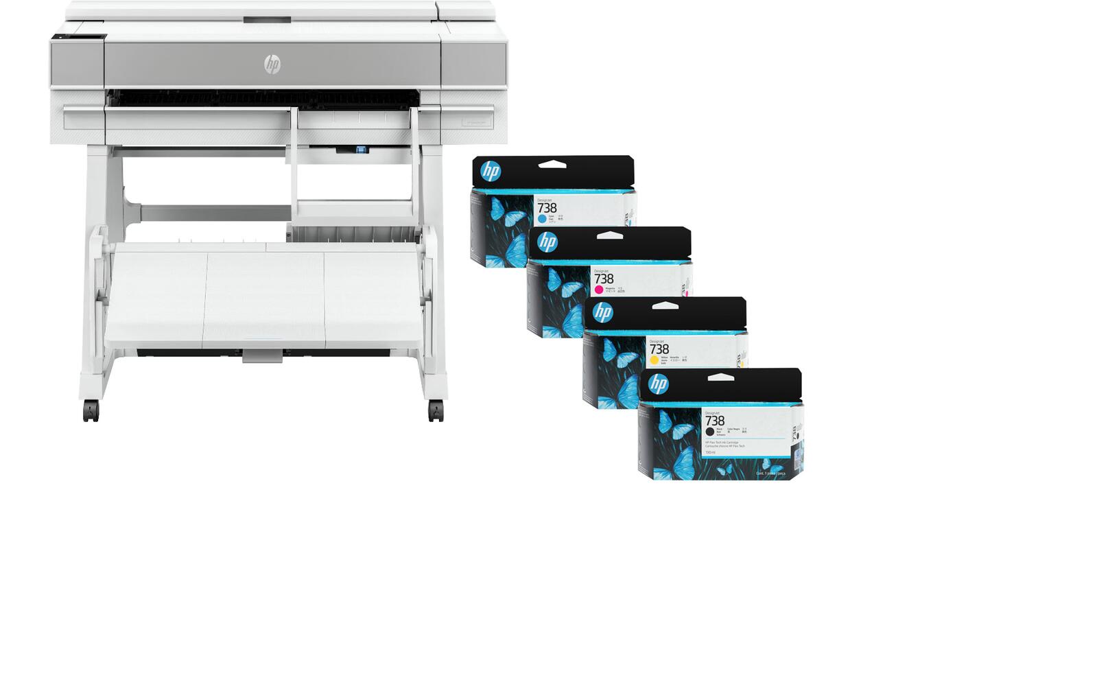 HP DesignJet T950 Tintenstrahl-Großformatdrucker Plotter inklusive zusätzlichem HP Tintenset 738