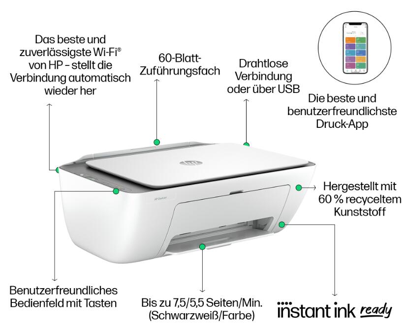 - Drucker, der zu mindestens 60% aus recyceltem Kunststoff besteht