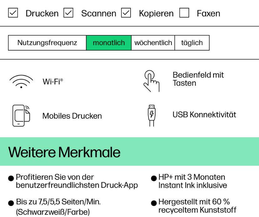 - 3 Probemonate HP Instant Ink – alle gedruckten Seiten/Monat inklusive, egal welcher Tarif
