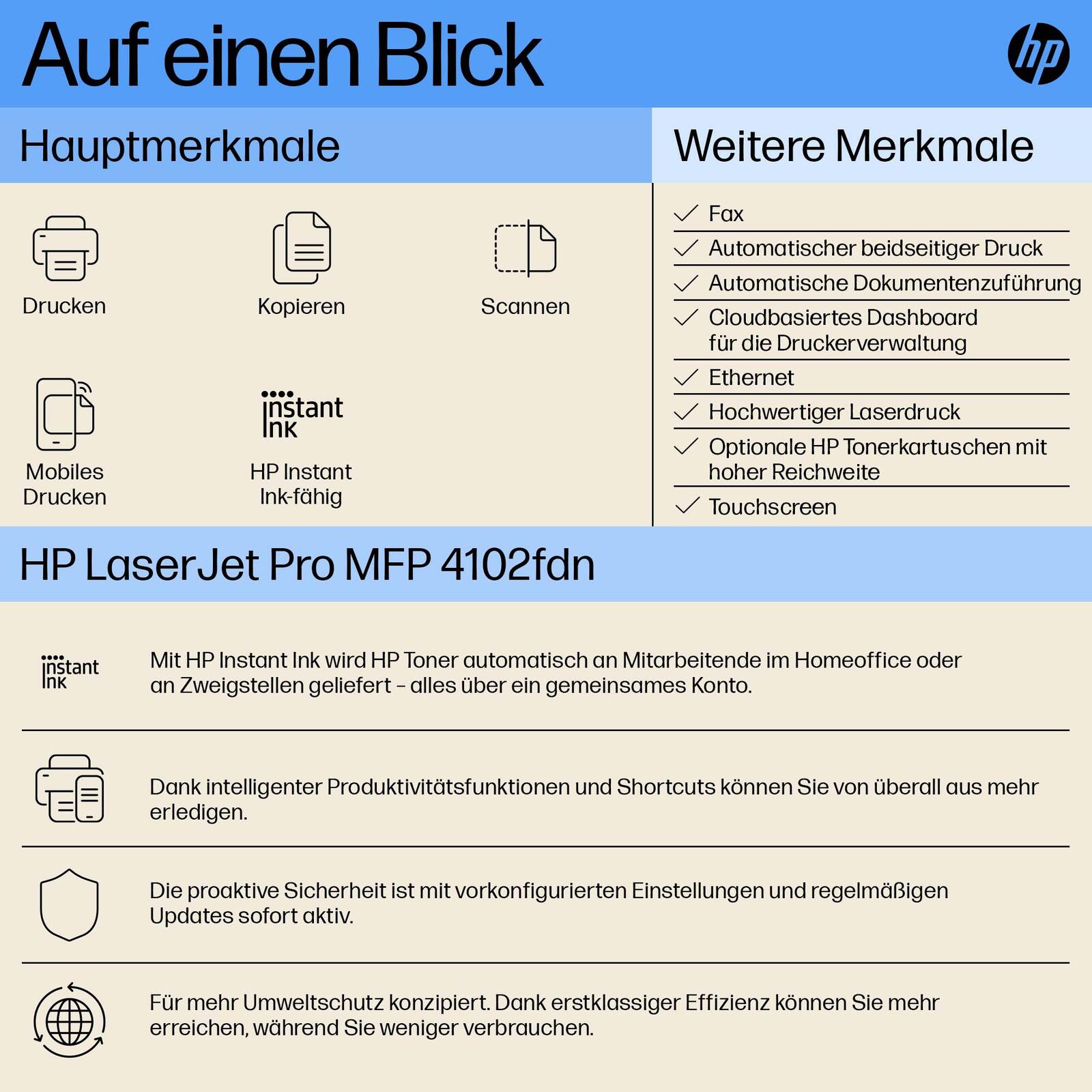 HP LaserJet Pro MFP 4102fdn Laser-Multifunktionsgerät s/w A4, 4in1, Drucker, Scanner, Kopierer, Fax, USB, LAN