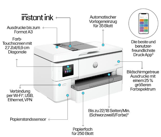 - 3 Probemonate HP Instant Ink – alle gedruckten Seiten/Monat inklusive, egal welcher Tarif