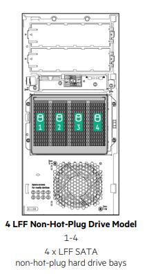 - 4x LFF NHP SATA Festplattenkäfig, 1TB SATA 6G Midline 7.2K LFF RW HDD enthalten