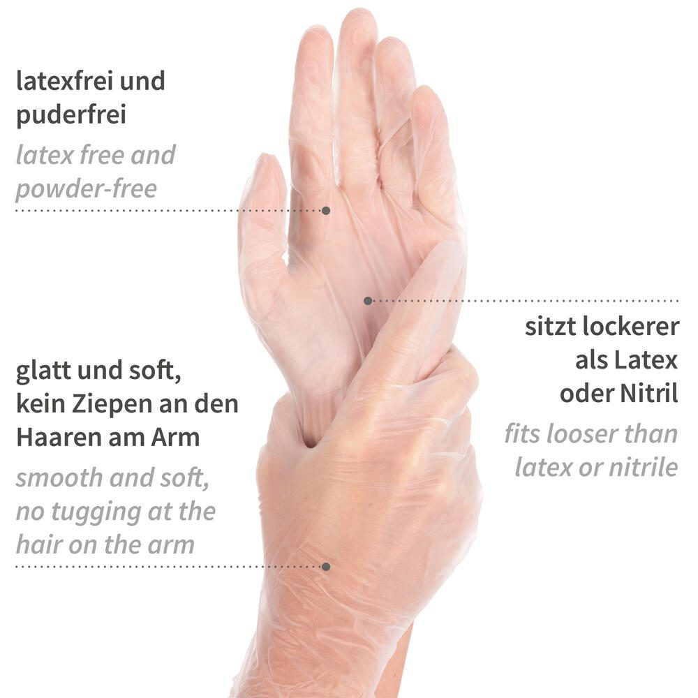 Die HYGONORM Einmalhandschuhe IDEAL LIGHT in der Größe M bieten dir eine optimale Lösung für hygienische Anwendungen im Alltag. Diese hochwertigen Einmalhandschuhe bestehen aus leichtem Vinyl und zeichnen sich durch ihre besondere Weichheit und angenehme Haptik aus. Sie sind die ideale Wahl, wenn du Wert auf Komfort und Schutz legst. Mit diesen Handschuhen bist du bestens gerüstet, um dich vor Keimen und Kontaminationen zu schützen. Sie sind puderfrei, was bedeutet, dass du sie ohne unangenehme Rückstände an den Händen tragen kannst. Der Rollrand sorgt dafür, dass die Handschuhe leicht an- und ausgezogen werden können, während die unsterile und beidhändig tragbare Ausführung maximale Flexibilität bietet. Ein herausragendes Merkmal dieser Handschuhe ist ihre Latexfreiheit. Dadurch sind sie besonders gut für Personen geeignet, die empfindlich auf Latex reagieren. Die HYGONORM Einmalhandschuhe IDEAL LIGHT sind nicht nur funktional, sondern auch für den Kontakt mit nicht-fettenden Lebensmitteln zugelassen, was sie ideal für den Einsatz in der Küche oder bei der Zubereitung von Speisen macht. Mit einer Packung von 100 Stück hast du stets genügend Handschuhe zur Hand, um deine hygienischen Standards aufrechtzuerhalten. Egal, ob du im Gesundheitswesen, in der Gastronomie oder im privaten Bereich tätig bist, diese Handschuhe bieten dir den Schutz, den du benötigst, ohne dabei auf Komfort zu verzichten. Vertraue auf die Qualität von HYGONORM und erlebe die Vorteile dieser praktischen Einmalhandschuhe in deinem Alltag.Technische Daten