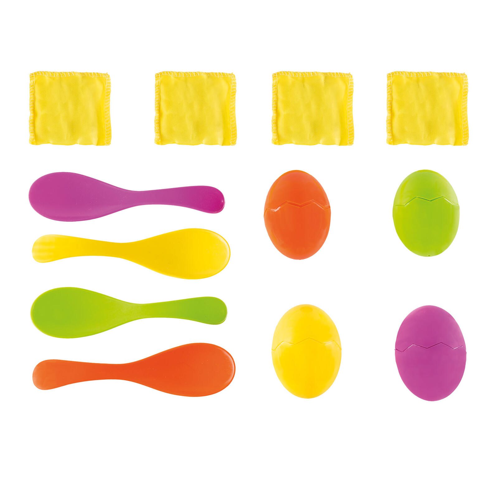 - Lieferung inkl.: 4 Löffel und 4 Eier mit gelben Säckchen als "Eigelb"