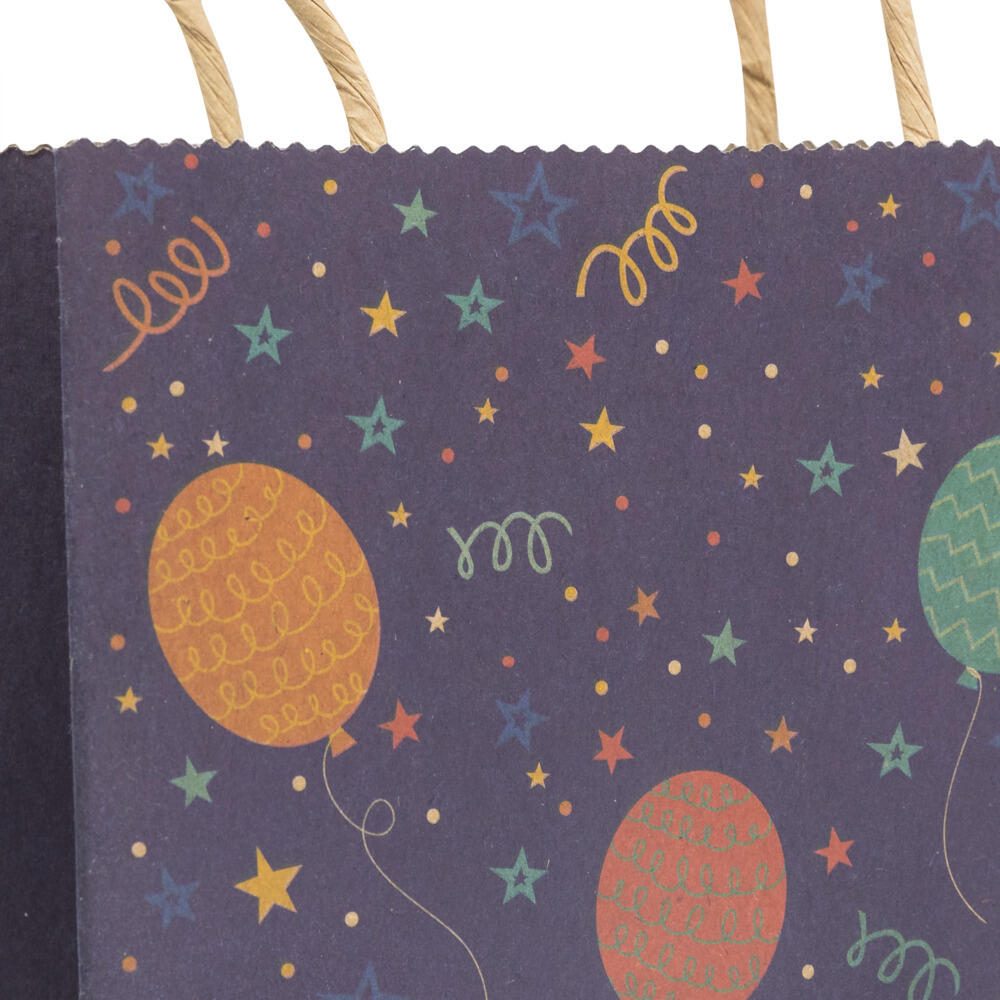Hergestellt aus robustem Kraftpapier, ist die Tüte stabil und gleichzeitig umweltfreundlich, da sie recyclebar ist. Ein praktischer Tragegriff erleichtert das Transportieren und sorgt für sicheren Halt beim Tragen. Die Kombination aus ansprechendem Design und funktionaler Gestaltung macht die Geschenktüte zu einer passenden Wahl für Geburtstagspräsente.