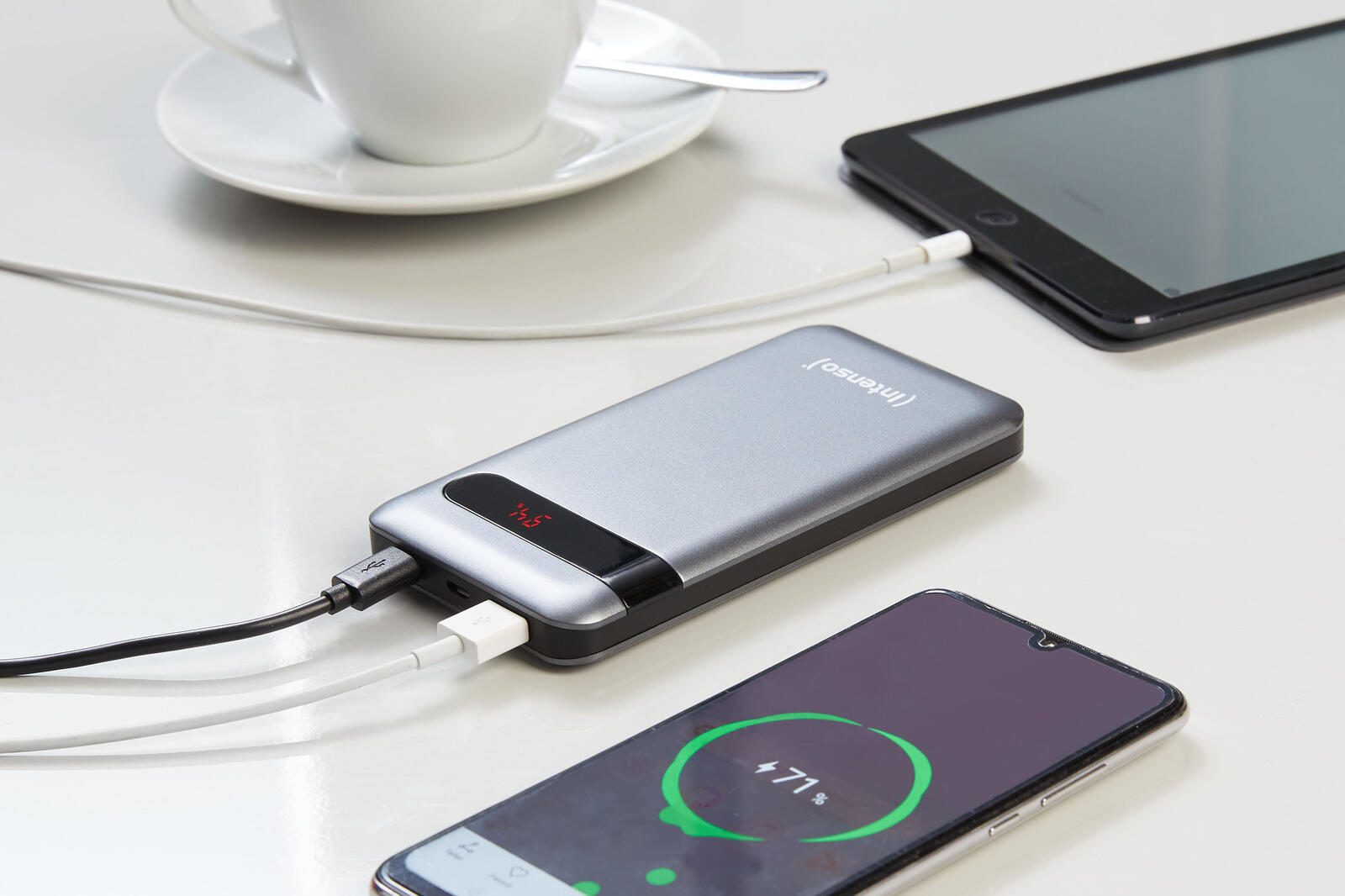 Die Powerbank von Intenso überzeugt nicht nur durch ihre hohe Leistung, sondern auch durch ihre kompakte Bauweise, die sie ideal für die Mitnahme auf Reisen, in der Schule, auf der Arbeit oder beim Camping macht. Egal, wo du bist, kannst du dich auf die Intenso Powerbank PD10000 verlassen, um deine Geräte mit neuer Energie zu versorgen.