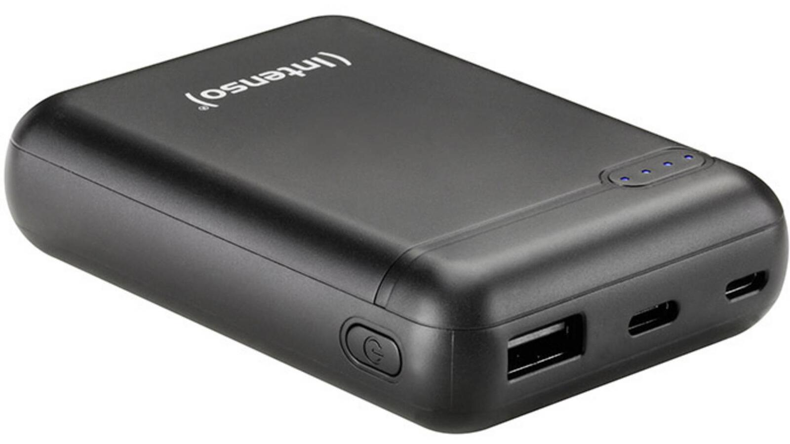 Intenso Powerbank XS10000 - Schwarz 10000 mAh, 2.1 A - 1x USB-A, 1x microUSB-B, inkl. USB-A zu USB-C Ladekabel