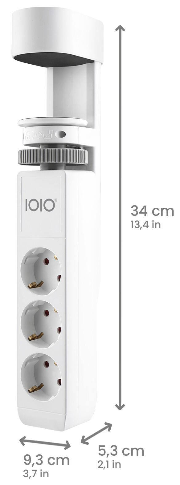 Die kompakte Bauweise mit den Maßen 34,0 cm Höhe, 9,3 cm Länge und 5,3 cm Tiefe macht die Steckdose zum dezenten Begleiter auf jedem Tisch. Das 1,5 Meter lange Netzkabel sorgt für flexible Platzierungsmöglichkeiten und ausreichend Reichweite zur nächsten Steckdose.