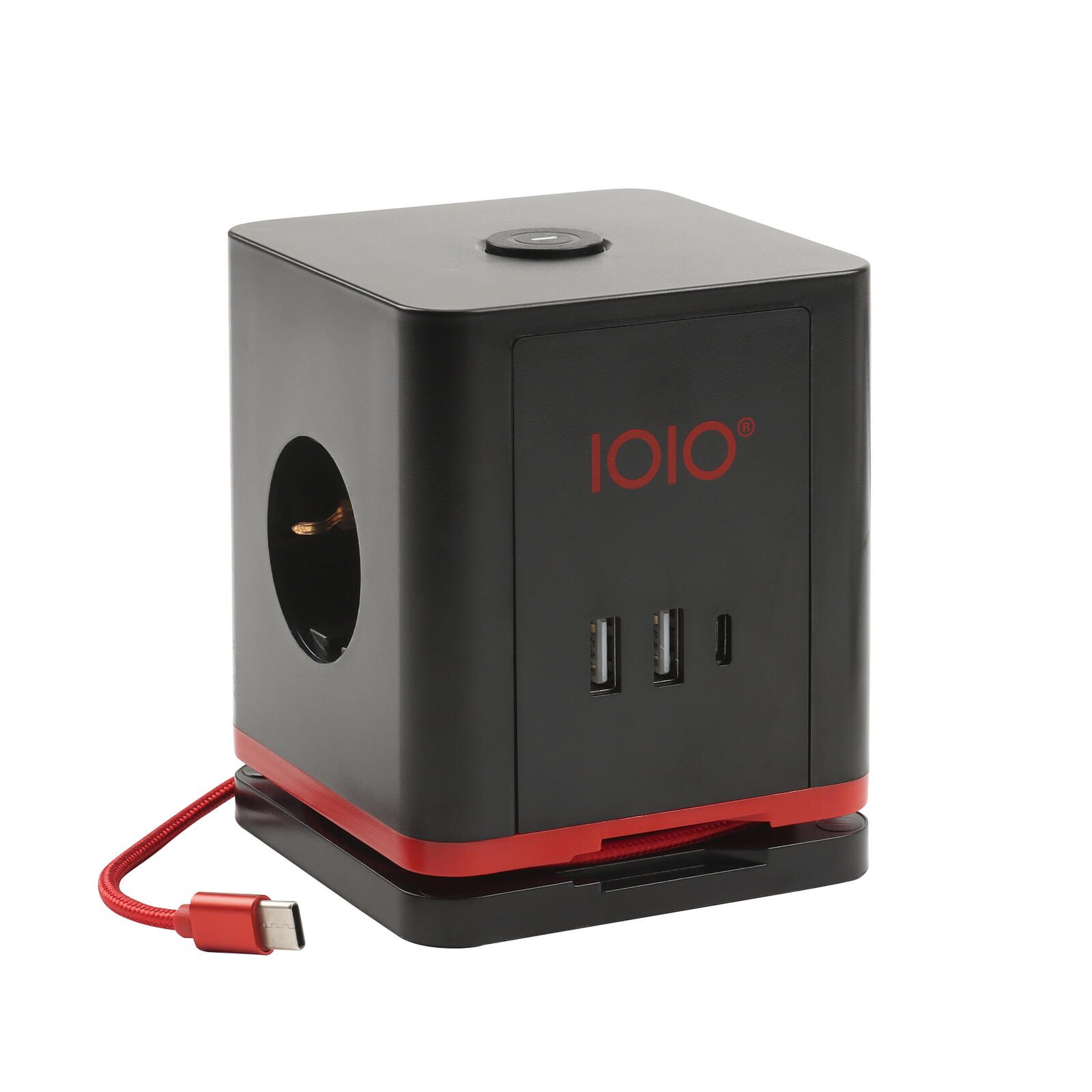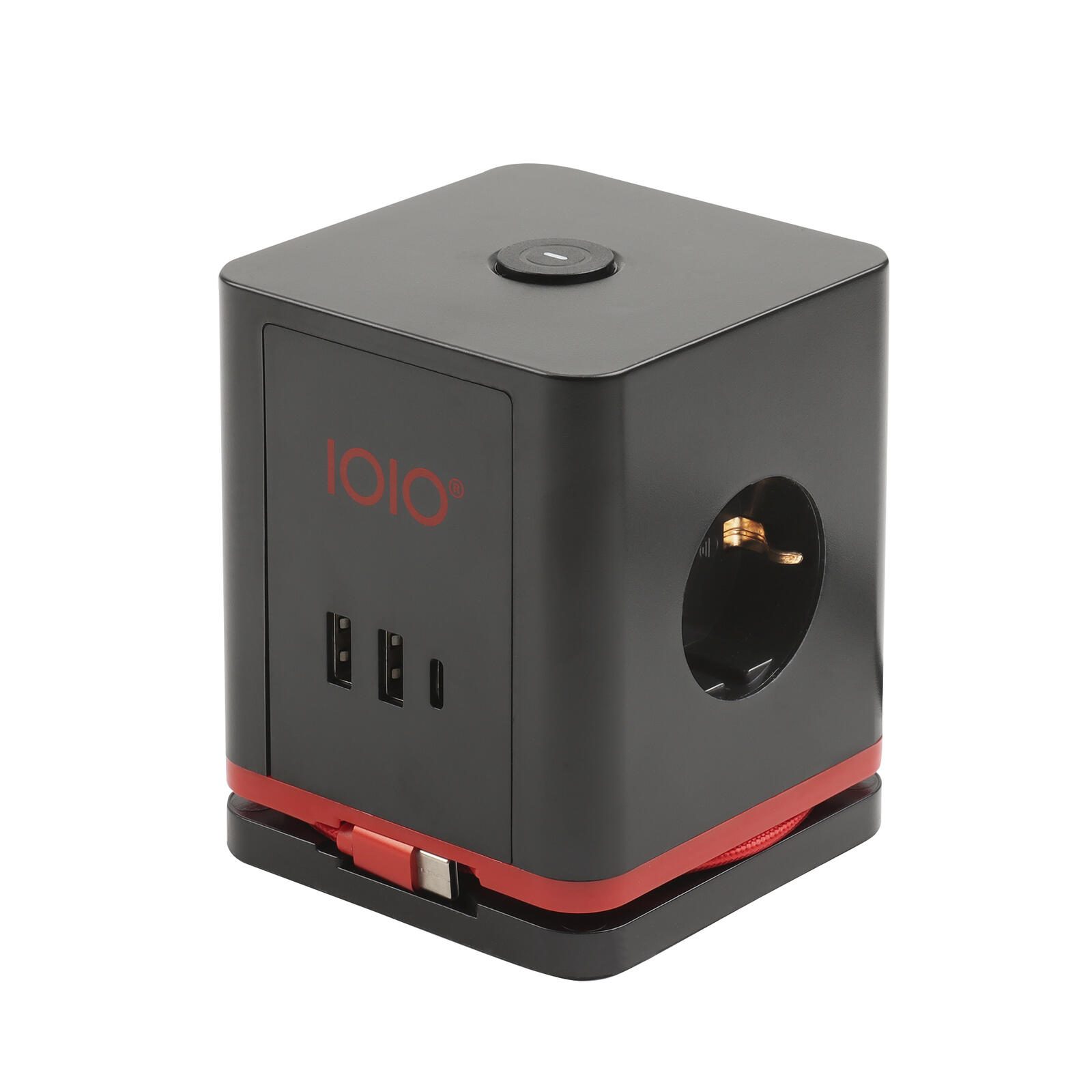 Der IOIO SW 1000 Steckdosenwürfel in elegantem Schwarz bietet eine praktische und platzsparende Lösung für Ihre Stromversorgung im Innenbereich. Mit drei Schukosteckdosen ausgestattet, ermöglicht er das gleichzeitige Anschließen mehrerer Geräte. Besonders hervorzuheben sind die zusätzlichen USB-Anschlüsse: Zwei USB-A-Ports und ein moderner USB-C-Slot an der Frontseite sorgen für ein vielseitiges Ladeerlebnis und machen separate Ladegeräte überflüssig.