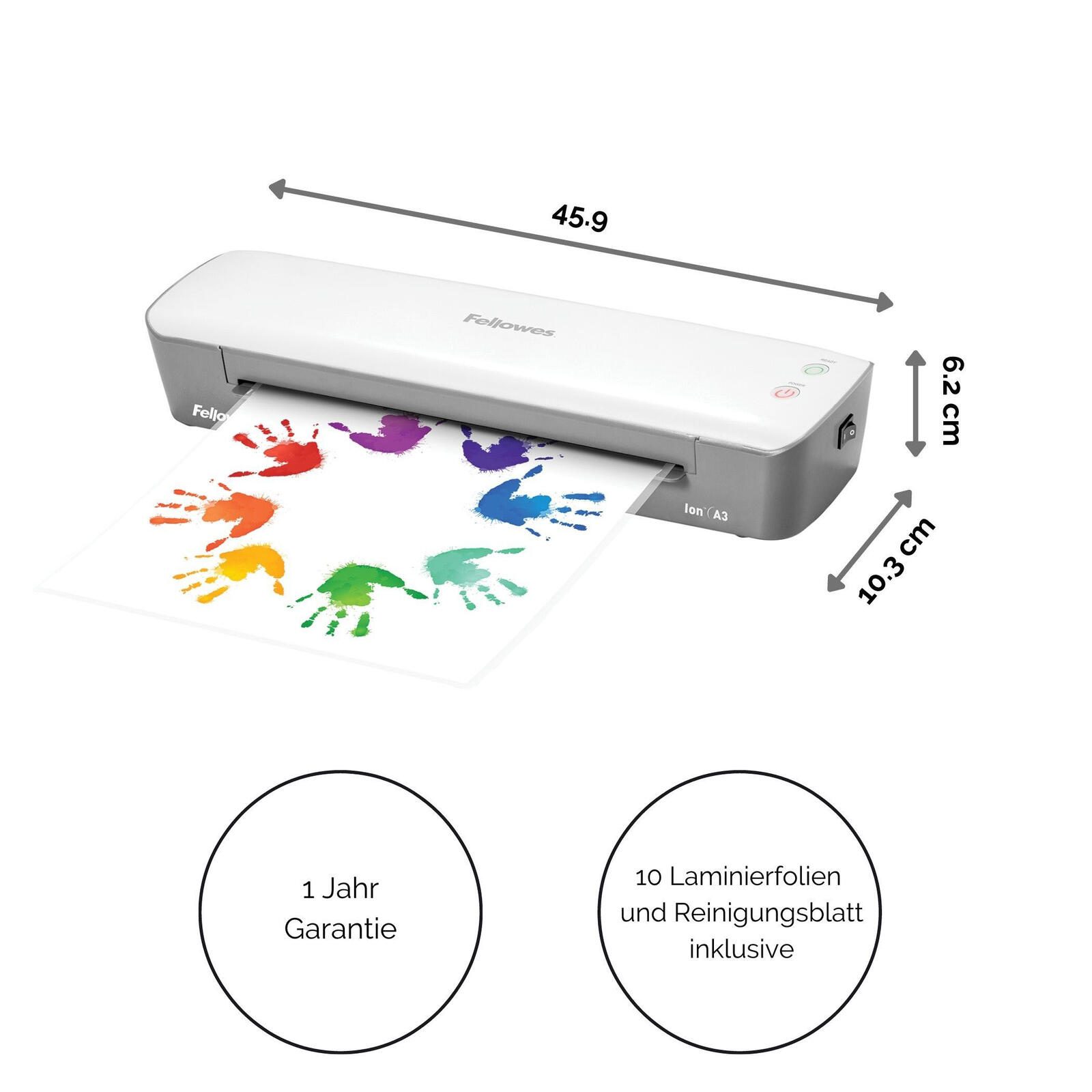 Vertraue auf die Qualität von Fellowes, einem renommierten Hersteller von Bürobedarf, und erlebe die Vorteile des Laminierens mit dem Ion bis DIN A3. Schütze deine Erinnerungen und Dokumente mit einem Gerät, das sowohl in der Leistung als auch im Design überzeugt.