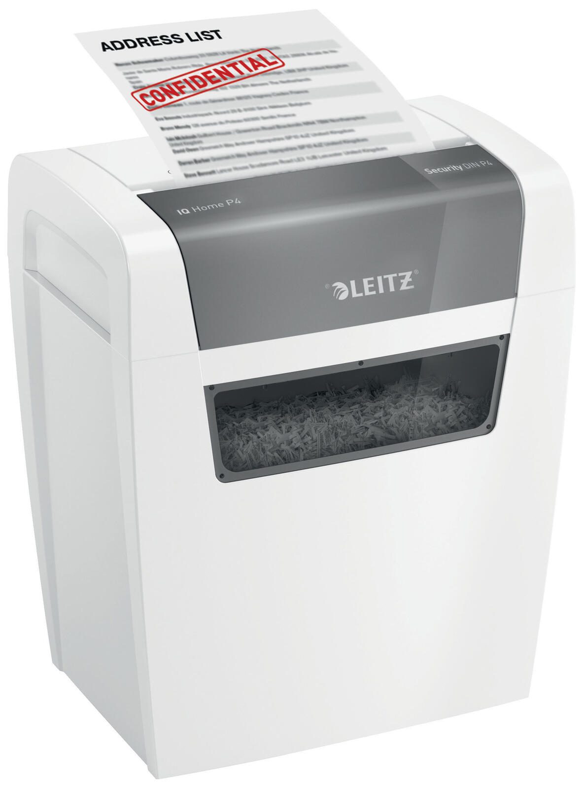 Der LEITZ Aktenvernichter mit Partikelschnitt IQ home bis 6 Blatt in Weiß ist die ideale Lösung für dein Home Office, geeignet für ca. 1-2 Personen. Mit seiner Sicherheitsstufe nach DIN 66399: P-4 sorgt er für zuverlässige Vertraulichkeit beim Vernichten von Dokumenten.