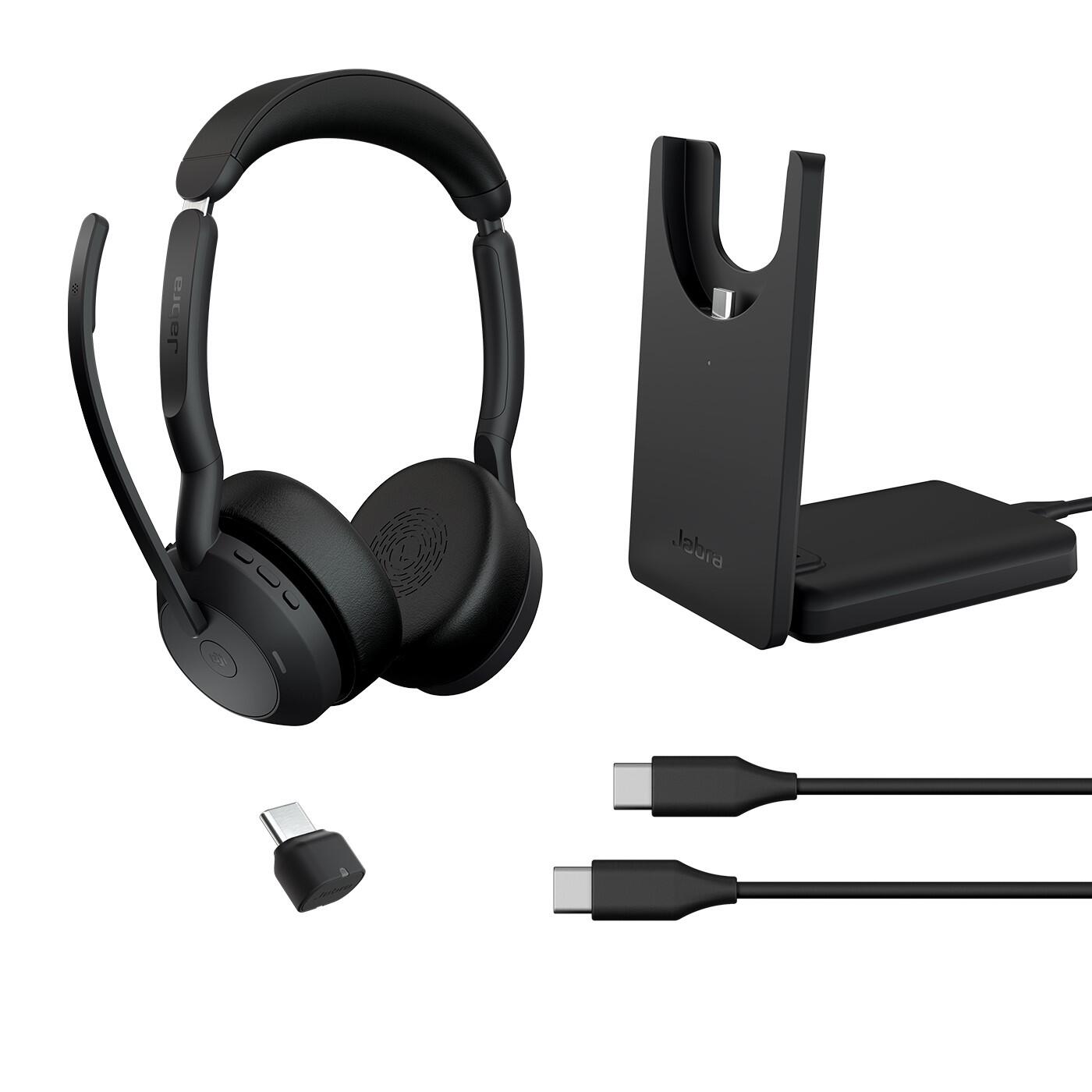 Jabra Evolve2 55 MS Stereo Headset On-Ear Bluetooth, kabellos, USB-C, Ladestation