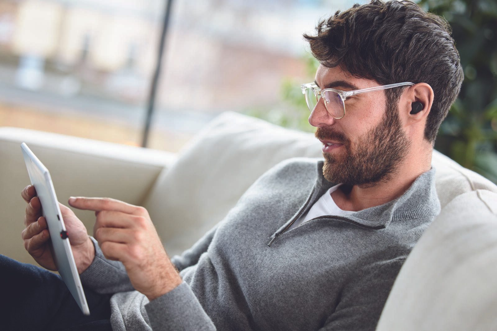 Professionelle Anrufe unterwegs: Kompakte In-Ear-Bluetooth-Kopfhörer entwickelt für hybrides Arbeiten.