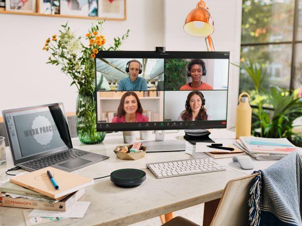 Es ist egal, ob du am Küchentisch, deinem Schreibtisch oder in einem Baumhaus arbeitest. Wenn deine Freisprechlösung und deine Online-Meeting-Plattform nahtlos kompatibel sind, dann kannst du von überall aus an Besprechungen teilnehmen.