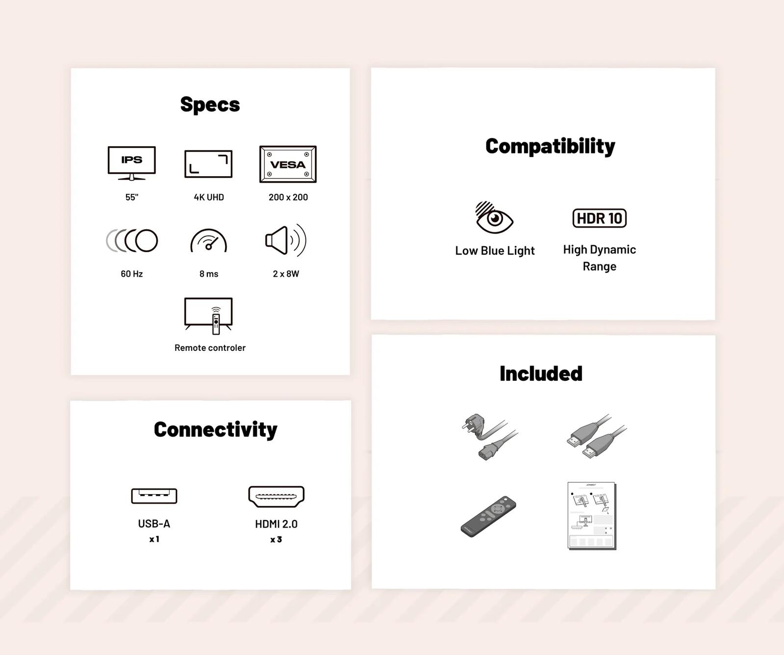 - Displaygröße: 139,7 cm (55"), Auflösung: 4K UHD (3840x2160)