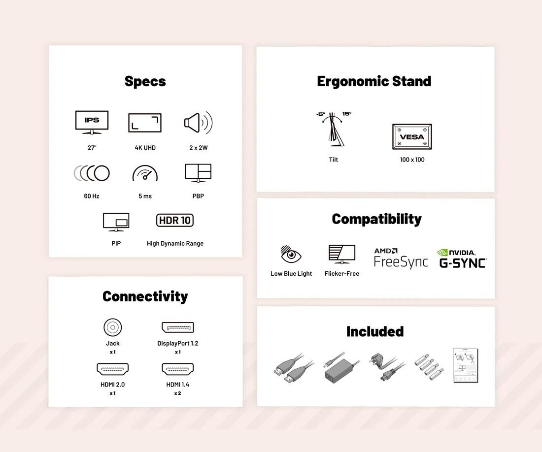 3840x2160 Pixel,IPS Panel, 5 ms, 60 Hz, AMD FreeSync, HDMI, DisplayPort