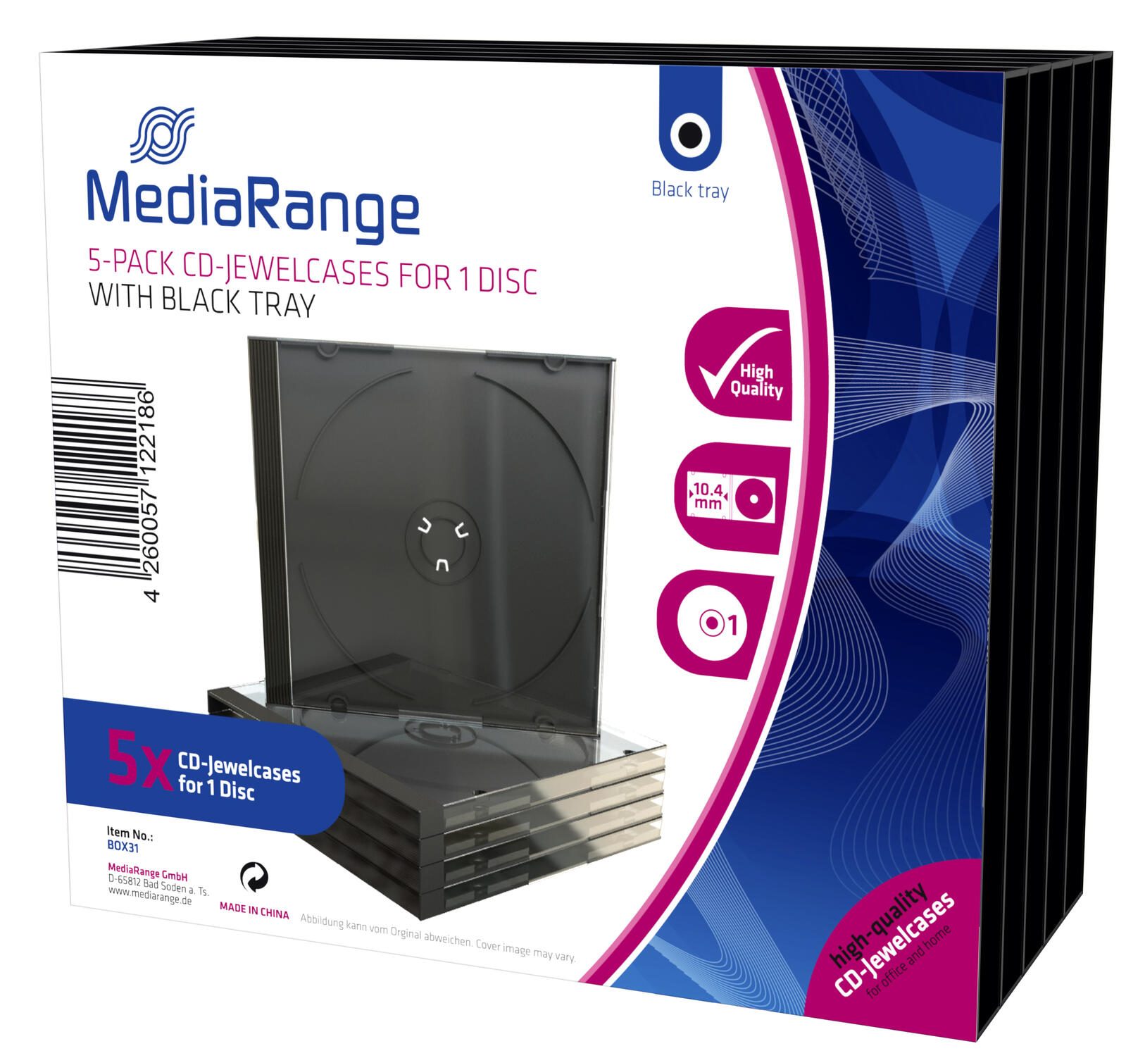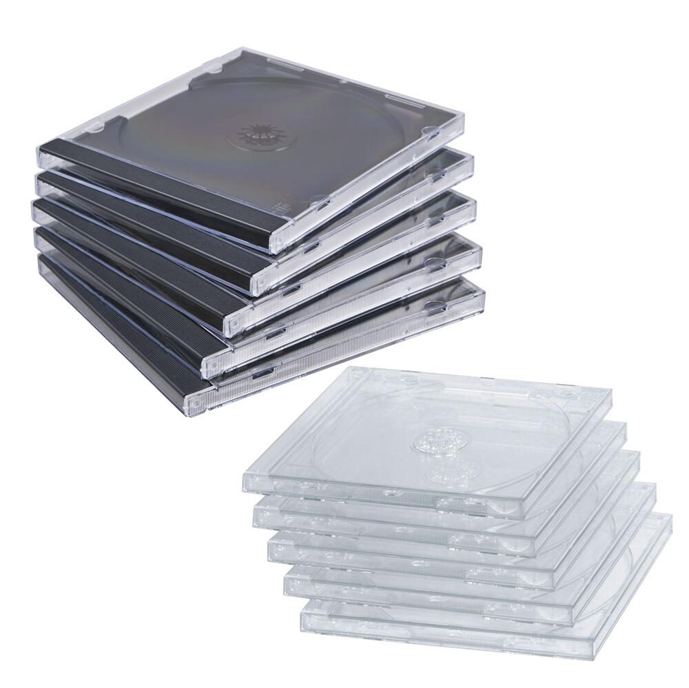 Jewel Cases bieten eine praktische und stilvolle Lösung zur Aufbewahrung deiner CDs. Diese Jewel Cases sind von MediaRange hergestellt und zeichnen sich durch ihre hochwertige Qualität aus. Das schlichte Design in Schwarz-Transparenz passt zu jedem Raum und jeder Sammlung. Ein besonderes Merkmal dieser Jewel Cases ist, dass sie kein aufgedrucktes Logo haben, was für ein minimalistisches und elegantes Erscheinungsbild sorgt. Du kannst deine CDs sicher und geschützt aufbewahren, ohne von auffälligen Logos oder Designs abgelenkt zu werden. Mit diesem praktischen 5er-Pack hast du genügend Jewel Cases, um deine CD-Sammlung ordentlich zu organisieren und vor Staub und Kratzern zu schützen. Die transparente Vorderseite ermöglicht es dir, den Inhalt schnell zu erkennen, während die robuste Rückseite für Stabilität und Schutz sorgt. Organisiere deine Musik, Daten oder andere Medien mit diesen hochwertigen Jewel Cases von MediaRange und genieße die Ordnung und Sicherheit, die sie bieten. Gönn dir diese praktischen Helfer, um deine CDs stilvoll zu präsentieren und griffbereit zu haben.Technische Daten