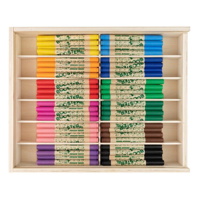 Die JOLLY Booster XL Filzstifte sind Teil der Farbstift-Familie und zeichnen sich durch ihre hohe Qualität und Langlebigkeit aus. Die farbsortierte Auswahl unterstützt Ihre kreativen Ideen und sorgt für brillante Ergebnisse, während der runde Griffkomfort ein ermüdungsfreies Arbeiten ermöglicht. Die Schreibfarbe entspricht der jeweiligen Stiftfarbe und überzeugt durch intensive Leuchtkraft.