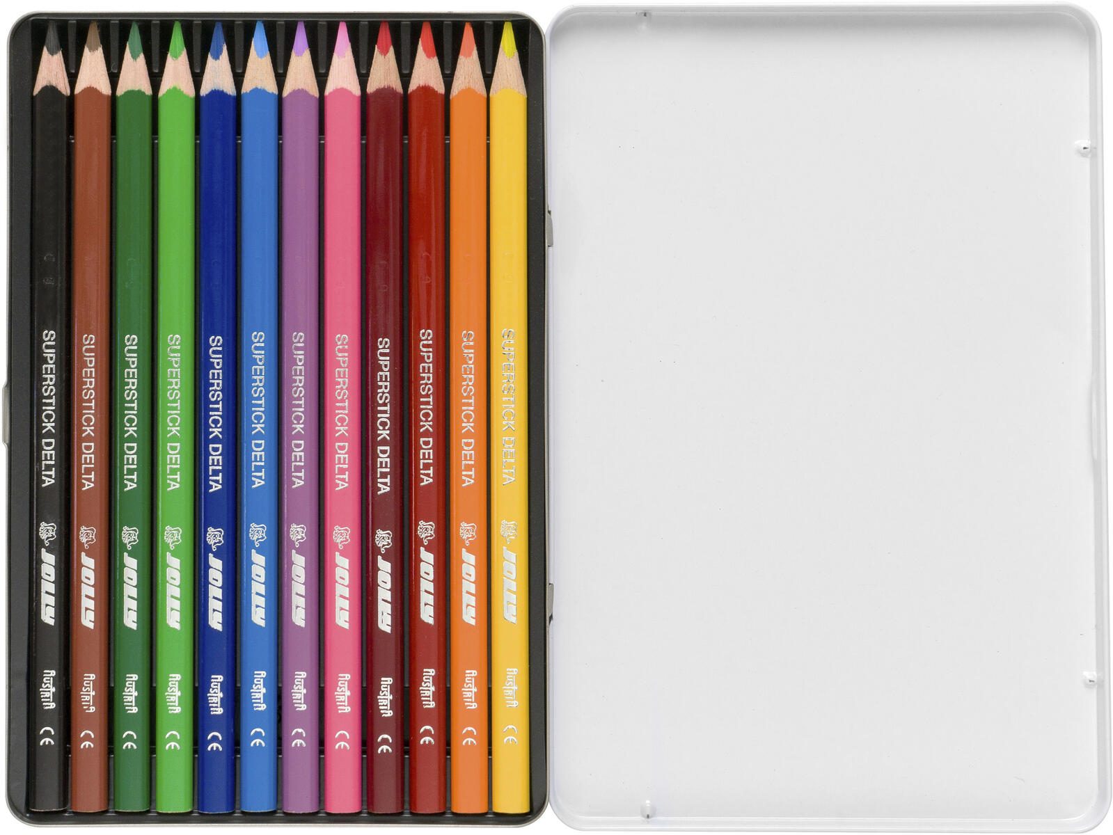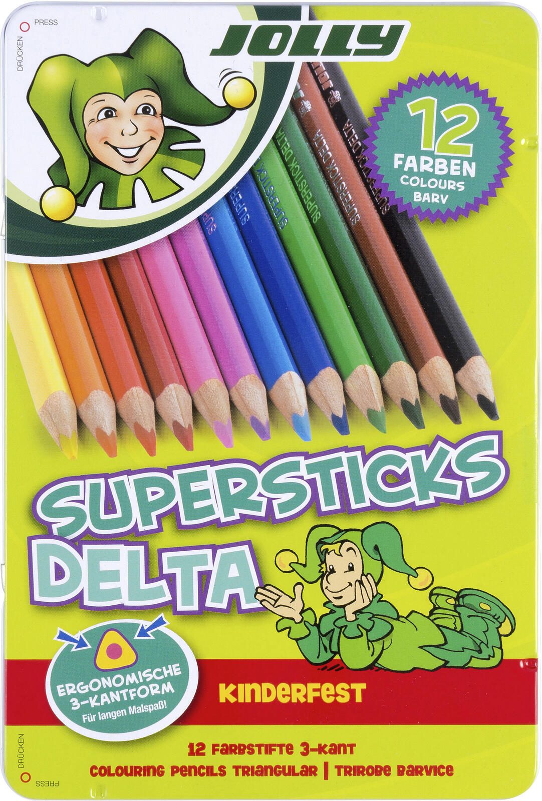 Die JOLLY Buntstifte Mehrfarbig sind die perfekte Wahl für kreative Köpfe, die Wert auf Qualität und Vielfalt legen. Mit einer praktischen Dreikantform bieten diese Stifte nicht nur ein angenehmes Schreibgefühl, sondern ermöglichen auch eine präzise Handhabung. Jeder der 12 Stifte in der Packung ist in einer strahlenden Farbe gehalten, darunter hellgelb, orange, kirschrot, kaminrot, zyklamen, rosa, hellblau, dunkelblau, hellgrün, dunkelgrün, mittelbraun und schwarz. Diese umfangreiche Farbpalette eröffnet dir unendliche Möglichkeiten, deine Ideen lebendig werden zu lassen. Die hohe Minenstabilität und Bruchfestigkeit der JOLLY Buntstifte sorgen dafür, dass du lange Freude an jedem einzelnen Stift hast. Egal, ob du zeichnest, malst oder einfach nur kritzelst, die Minenqualität garantiert ein gleichmäßiges und flüssiges Farbauftragen. Das Metall-Etui, in dem die Buntstifte geliefert werden, schützt die Stifte vor Beschädigungen und sorgt dafür, dass sie immer griffbereit sind. Die JOLLY Buntstifte sind nicht nur für Kinder geeignet, sondern auch für Erwachsene, die ihre Kreativität ausleben möchten. Sie sind ideal für Schulprojekte, Freizeitaktivitäten oder einfach zum Entspannen beim Malen. Die Kombination aus ansprechendem Design und hochwertiger Verarbeitung macht diese Buntstifte zu einem unverzichtbaren Begleiter für alle, die das Zeichnen und Malen lieben. Mit den JOLLY Buntstiften Mehrfarbig holst du dir ein Stück Kreativität nach Hause, das sowohl in der Schule als auch in der Freizeit begeistert. Die Vielfalt der Farben und die hohe Qualität der Minen machen sie zu einer ausgezeichneten Wahl für jeden Künstler, egal ob Anfänger oder Profi.Technische Daten