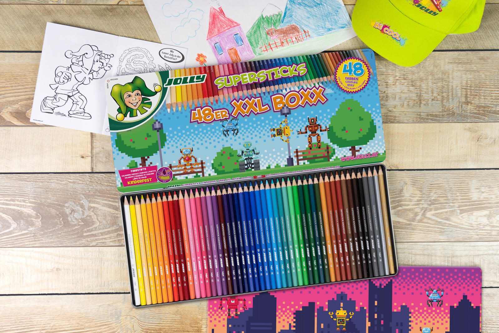 Entdecke die Welt der Farben mit den JOLLY Buntstiften Mehrfarbig und genieße das kreative Erlebnis, das sie dir bieten. Mit 48 Stiften in einem Set bist du bestens ausgestattet, um deine Kunstwerke zu gestalten und deine Kreativität auszudrücken.