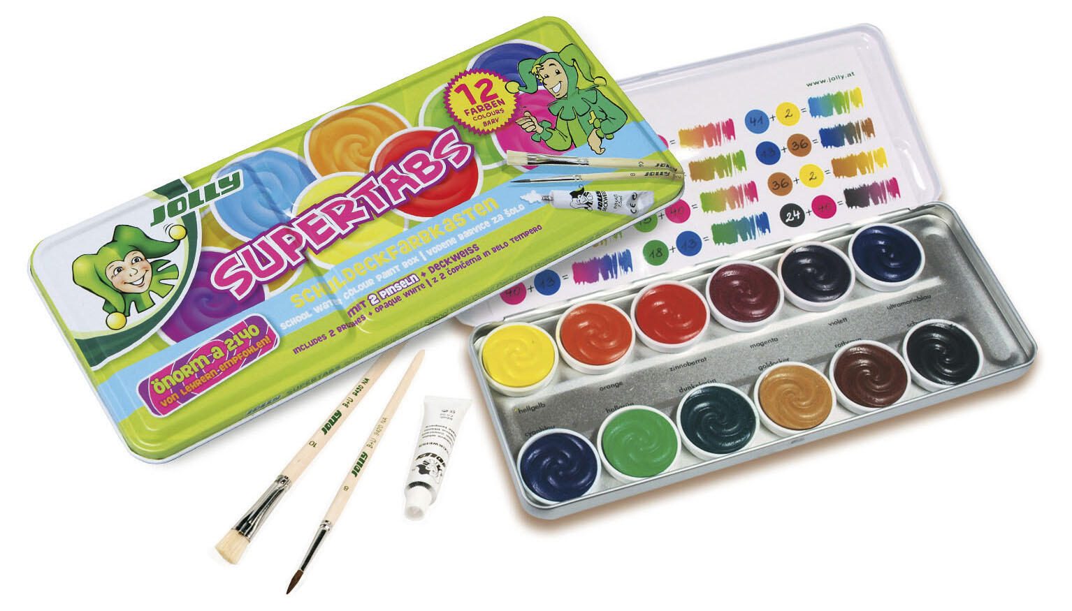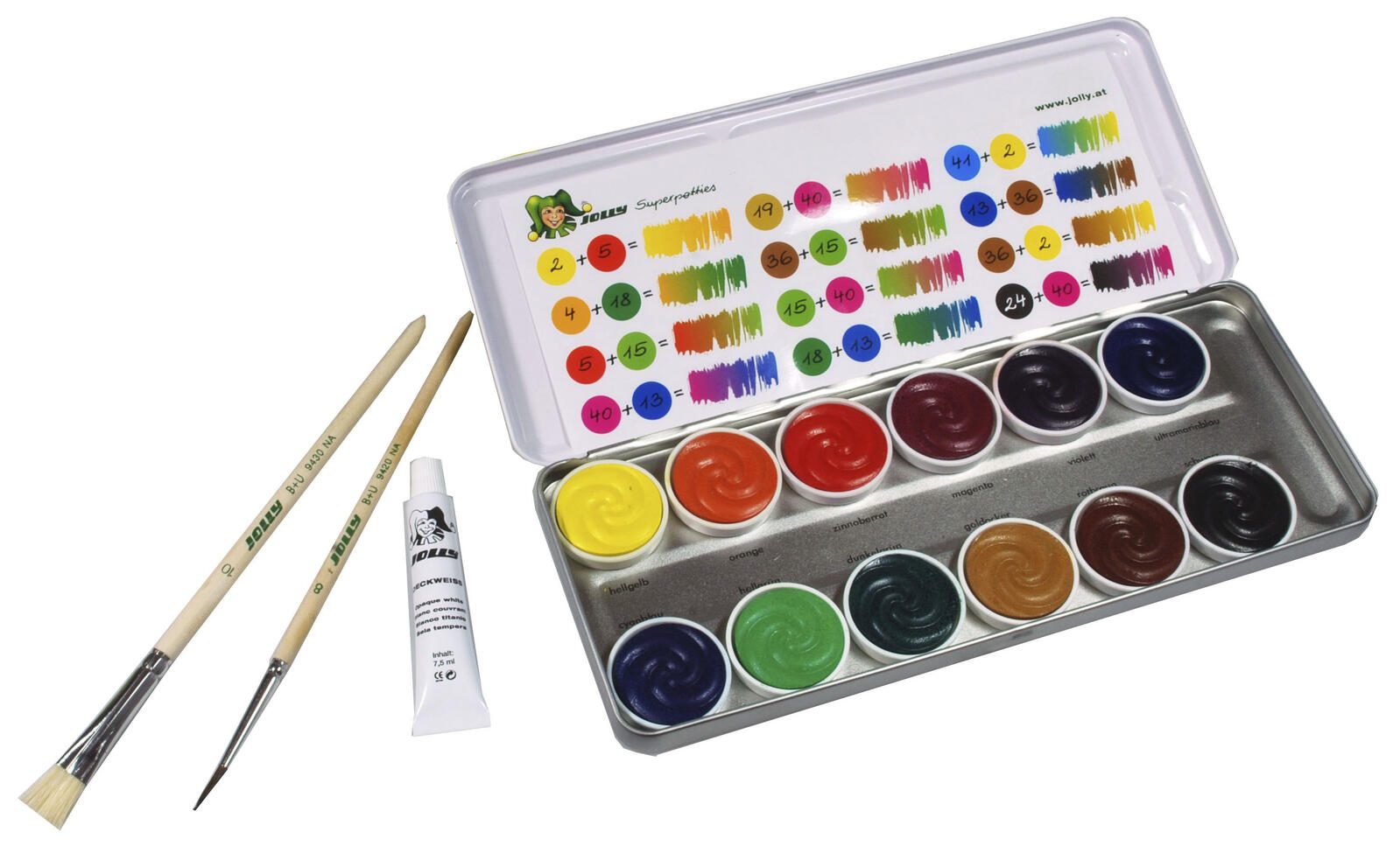 Der JOLLY Wasserfarbkasten mit 12 Farben ist die ideale Wahl für kreative Köpfe, die ihre künstlerischen Fähigkeiten entfalten möchten. Dieser hochwertige Farbkasten bietet eine umfangreiche Palette an lebendigen Farben, darunter hellgelb, orange, zinnoberrot, violett, ultramarinblau, hellgrün, dunkelgrün, goldocker, schwarz, rotbraun, magenta und cyanblau. Mit diesen vielseitigen Farbtönen kannst du deine Kunstwerke zum Leben erwecken und deiner Fantasie freien Lauf lassen. Das Besondere an diesem Wasserfarbkasten ist das praktische Metall-Etui, das nicht nur für eine sichere Aufbewahrung sorgt, sondern auch einen stilvollen Look bietet. So hast du deine Farben immer griffbereit und geschützt, egal ob zu Hause oder unterwegs. Der JOLLY Wasserfarbkasten ist besonders für Schüler, Hobbykünstler und alle, die Spaß am Malen haben, geeignet. Die Farben lassen sich leicht mischen und auftragen, was dir ermöglicht, verschiedene Techniken auszuprobieren und deine Fähigkeiten weiterzuentwickeln. Mit einem Inhalt von 12 sorgfältig ausgewählten Farben bietet dieser Farbkasten eine hervorragende Grundlage für jede Art von Malprojekt. Egal, ob du mit Aquarellpapier, Skizzenbuch oder anderen Untergründen arbeitest, die JOLLY Farben überzeugen durch ihre hohe Farbintensität und Deckkraft. Entdecke die Freude am Malen mit dem JOLLY Wasserfarbkasten und lasse deiner Kreativität freien Lauf. Ideal für Kinder und Erwachsene, die ihre künstlerischen Talente fördern möchten. Der JOLLY Wasserfarbkasten ist nicht nur ein praktisches Malwerkzeug, sondern auch eine Quelle der Inspiration für alle, die das Malen lieben.Technische Daten