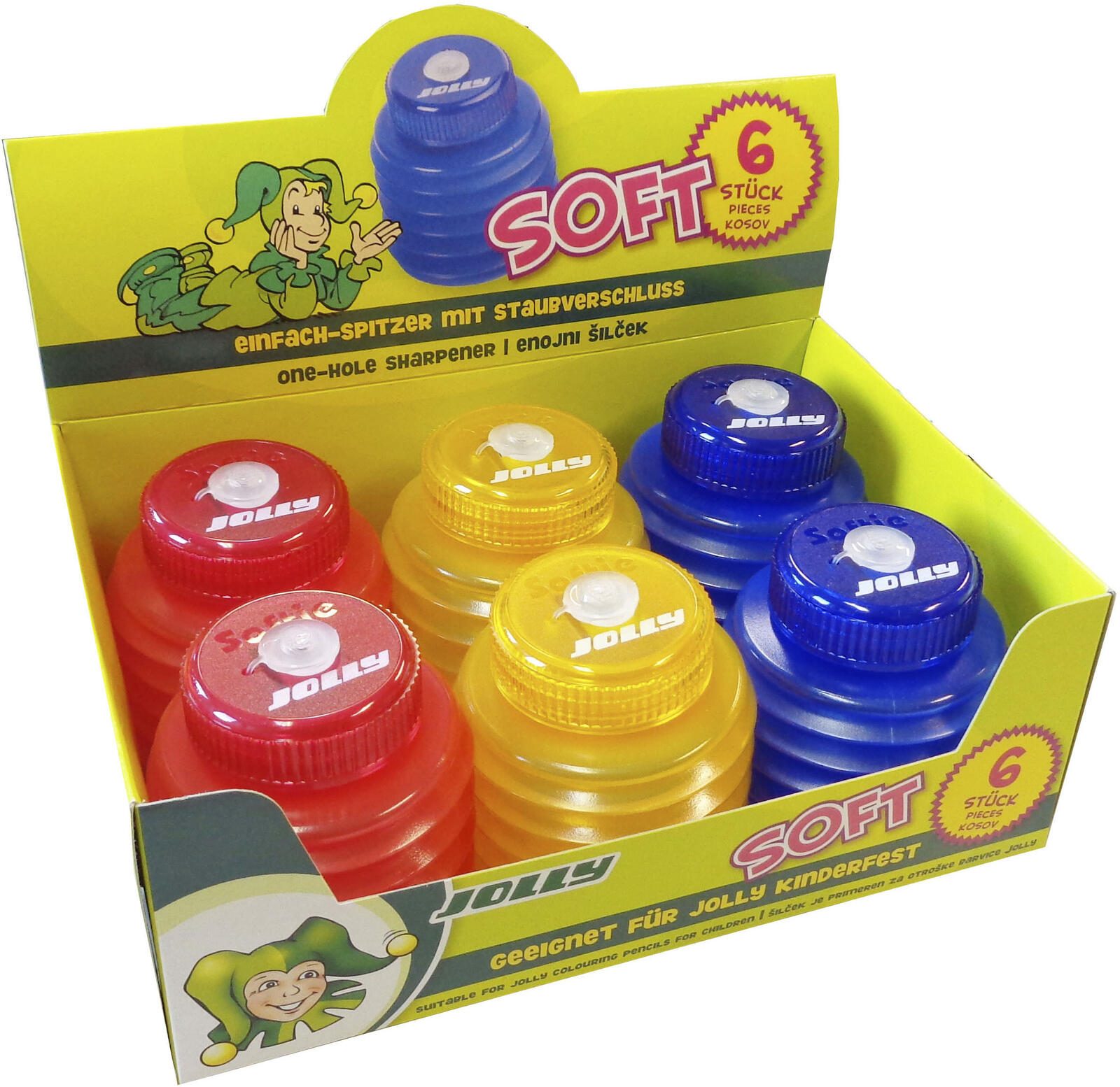 Der JOLLY Dosenspitzer ist farbsortiert und in den klassischen Farbtönen Rot, Blau und Gelb erhältlich. Dank seines Materials aus Kunststoff ist er leicht und dennoch stabil, ideal für den täglichen Gebrauch Zuhause, in der Schule oder im Büro.