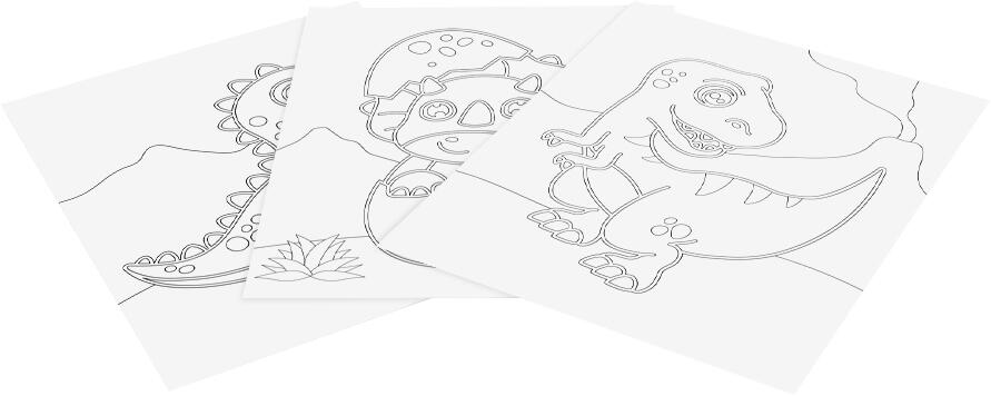 - Setumfang: 3 Malvorlagen, 8 Farben, 1 Stift