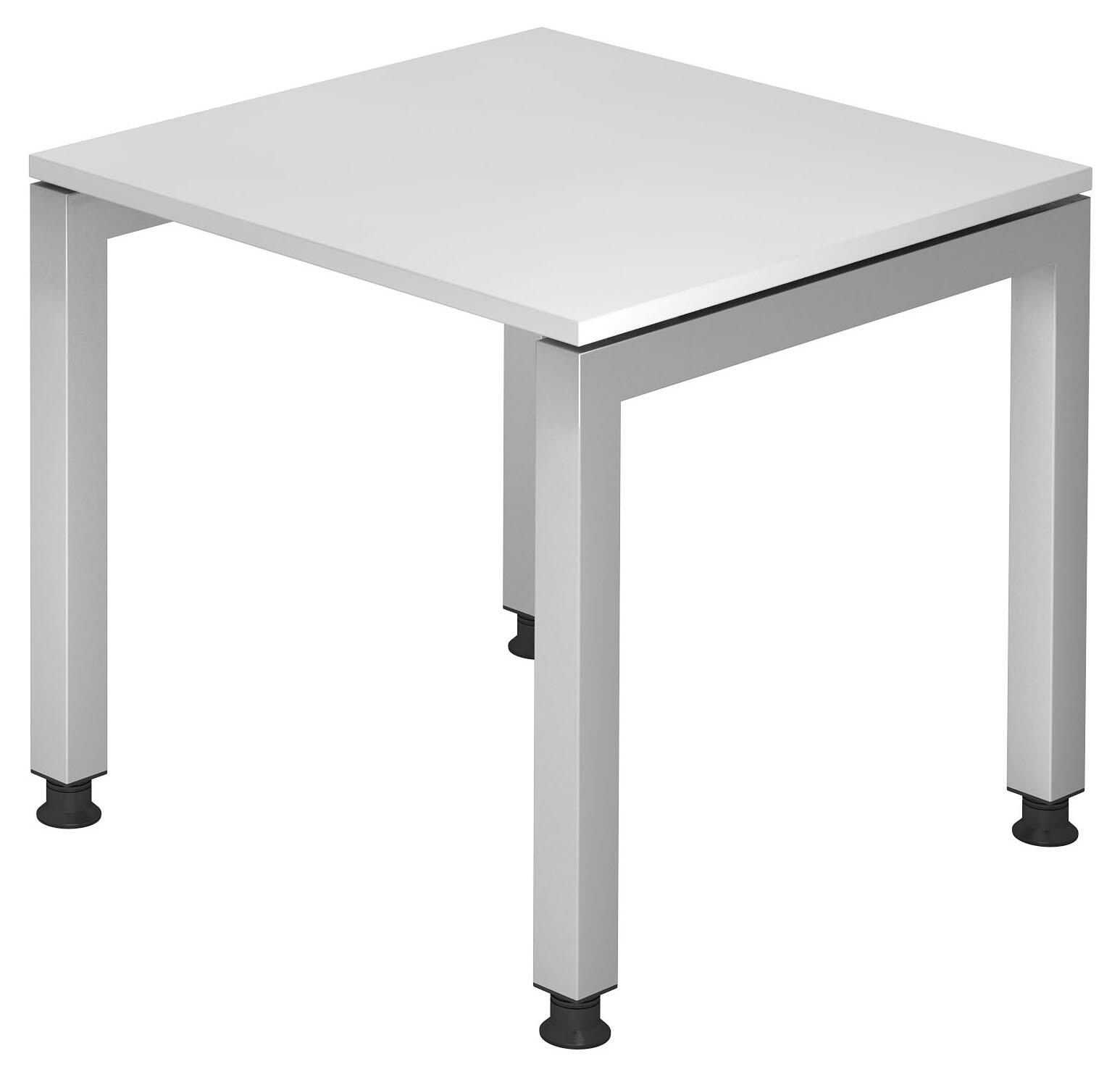 Der HAMMERBACHER höhenverstellbare Schreibtisch VJS08/W/S in elegantem Weiß vereint Funktionalität mit modernem Design. Dieser Schreibtisch ist aus hochwertiger Spanplatte gefertigt, die nicht nur stabil, sondern auch pflegeleicht ist. Das Gestell aus robustem Stahl in ansprechendem Silber sorgt für eine hohe Standfestigkeit und Langlebigkeit. Mit seinen kompakten Maßen von 80 cm x 80 cm x 68 cm passt dieser Schreibtisch ideal in jedes Büro oder Home-Office und bietet Ihnen ausreichend Platz für Ihre Arbeitsmaterialien. Ein herausragendes Merkmal des VJS08 ist die Höhenverstellbarkeit, die es Ihnen ermöglicht, die Tischhöhe individuell anzupassen. Ob im Sitzen oder Stehen, Sie können jederzeit eine ergonomische Position einnehmen, die Rückenbeschwerden vorbeugt und Ihre Produktivität steigert. Diese Flexibilität ist besonders vorteilhaft für Nutzer, die lange Stunden am Schreibtisch verbringen und Wert auf eine gesunde Körperhaltung legen. Die schlichte weiße Tischplatte harmoniert perfekt mit dem silbernen Gestell und verleiht Ihrem Arbeitsbereich eine frische, moderne Ausstrahlung. Der Schreibtisch kommt ohne zusätzliche Fächer oder Schübe aus, was Ihnen die Möglichkeit gibt, Ihre Arbeitsumgebung nach Ihren Wünschen zu gestalten und zu organisieren. Der HAMMERBACHER VJS08 ist nicht nur ein Möbelstück, sondern ein durchdachtes Arbeitsinstrument, das Ihnen hilft, effizienter zu arbeiten und gleichzeitig Ihr Raumdesign zu optimieren. Erleben Sie die Vorteile eines höhenverstellbaren Schreibtisches und gestalten Sie Ihre Arbeitsweise neu.Technische Daten