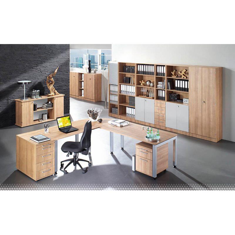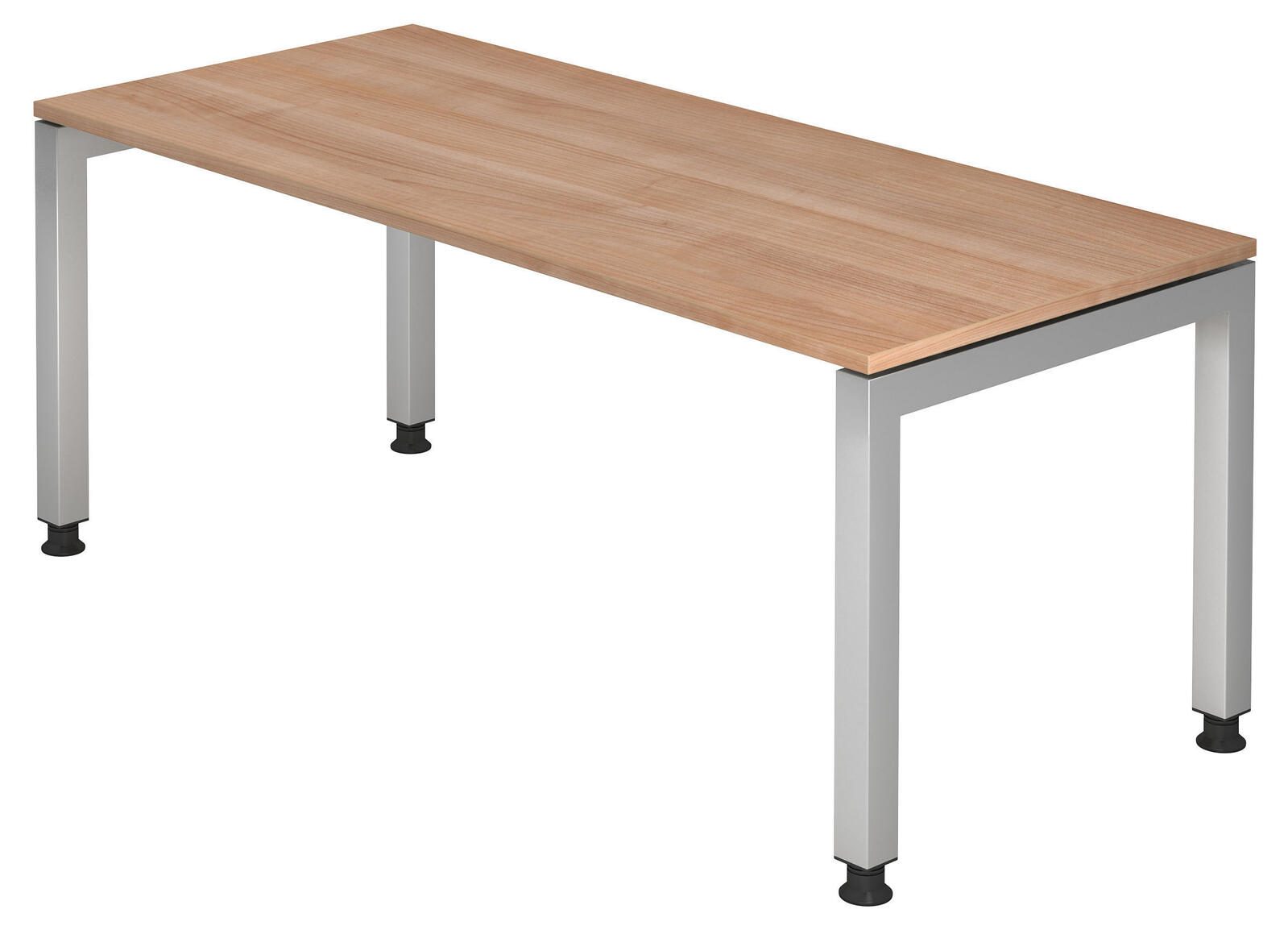 Der HAMMERBACHER höhenverstellbare Schreibtisch VJS19/N/S in elegantem Nussbaum vereint Funktionalität und Stil auf perfekte Weise. Die Tischplatte besteht aus robuster Spanplatte, die nicht nur ästhetisch ansprechend ist, sondern auch für ihre Langlebigkeit bekannt ist. Das silberne Stahlgestell bietet dabei die notwendige Stabilität und sorgt dafür, dass der Schreibtisch auch bei häufigem Verstellen der Höhe sicher steht. Mit den Maßen von 180 cm in der Breite, 80 cm in der Tiefe und 68 cm in der Höhe bietet dieser Schreibtisch ausreichend Platz für Ihre Arbeitsmaterialien, Computer und persönliche Gegenstände. Das 4-Fuß-Gestell sorgt für eine gleichmäßige Gewichtsverteilung und ermöglicht eine einfache Anpassung der Höhe, sodass Sie sowohl im Sitzen als auch im Stehen komfortabel arbeiten können. Diese Flexibilität fördert nicht nur die Ergonomie, sondern trägt auch zu einer gesunden Arbeitsweise bei, indem sie die Möglichkeit bietet, die Position während des Arbeitstags zu wechseln. Dank der klassischen Nussbaumfarbe fügt sich der Schreibtisch harmonisch in jede Büro- oder Wohnraumgestaltung ein. Der zeitlose Look wird durch das silberne Gestell perfekt ergänzt, was dem Schreibtisch eine moderne Note verleiht. Obwohl der Schreibtisch über keine zusätzlichen Fächer oder Schübe verfügt, bietet die großzügige Tischplatte ausreichend Platz für Ihre kreativen und beruflichen Projekte. Der HAMMERBACHER VJS19/N/S ist die ideale Wahl für alle, die Wert auf Qualität und Design legen. Er unterstützt Sie dabei, Ihre Produktivität zu steigern und gleichzeitig einen stilvollen Arbeitsplatz zu schaffen.Technische Daten