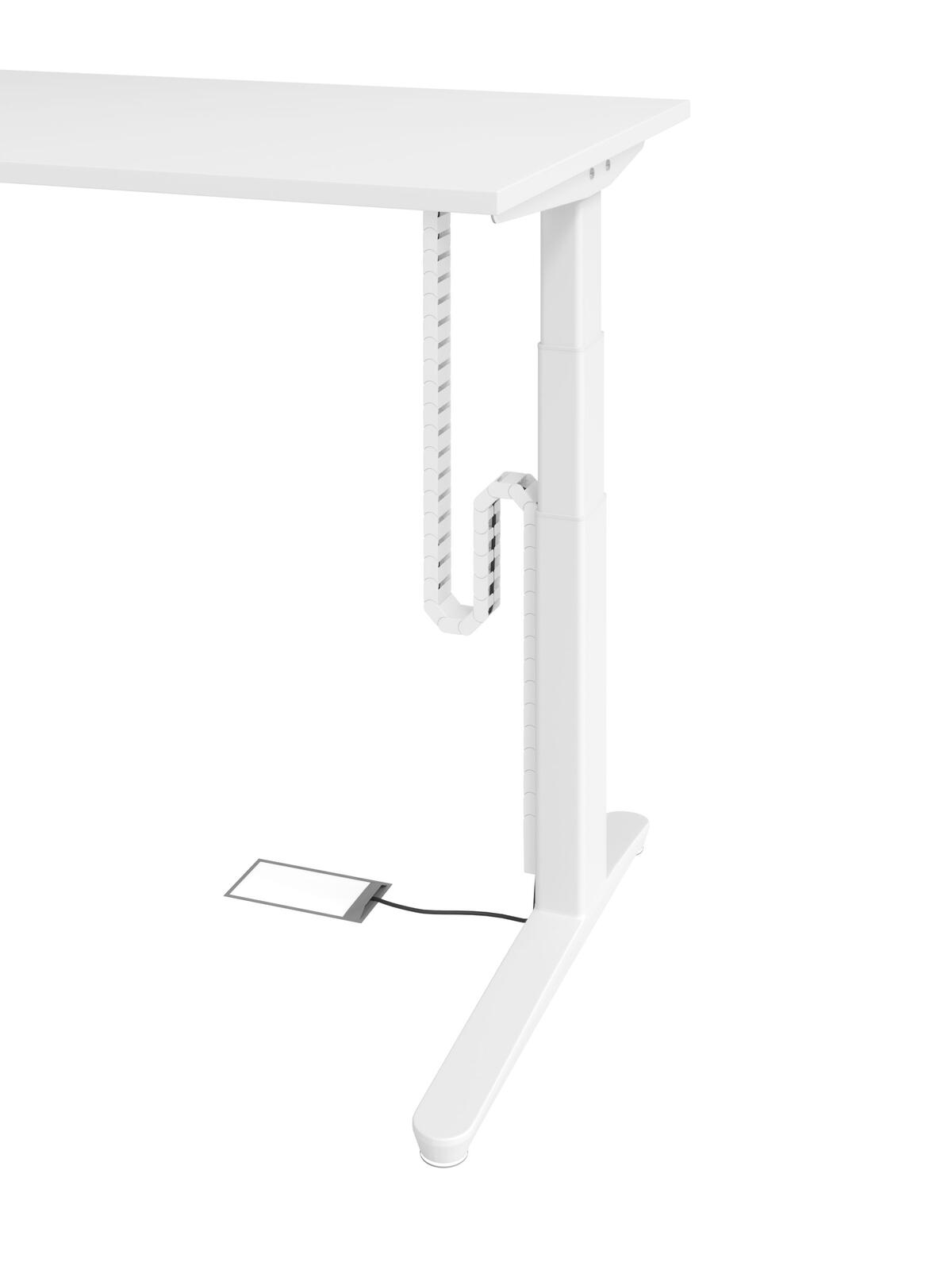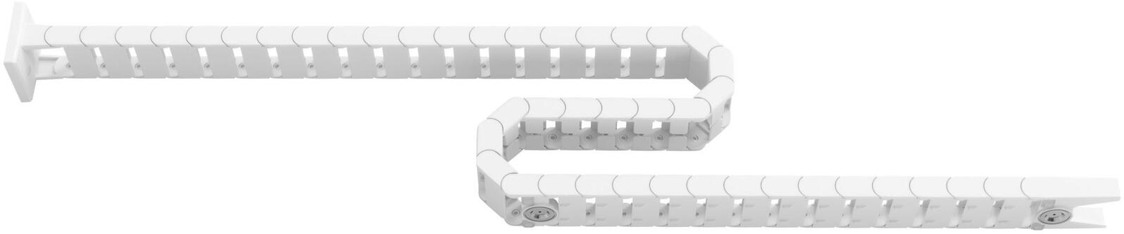 Die HAMMERBACHER Kabelkette mit einer Länge von 130 cm in elegantem Weiß ist die ideale Lösung für eine aufgeräumte und organisierte Kabelverlegung. Ihr modernes Design fügt sich harmonisch in jedes Büro- oder Wohnambiente ein und sorgt dafür, dass Kabel nicht mehr sichtbar und störend herumliegen. Hergestellt aus hochwertigem Kunststoff, bietet die Kabelkette nicht nur eine ansprechende Optik, sondern auch eine hohe Langlebigkeit und Robustheit. Die Innenmaße der Kabelführung betragen 3,7 cm in der Breite und 1,5 cm in der Tiefe, was ausreichend Platz für die meisten Kabeltypen bietet. Diese durchdachte Dimensionierung ermöglicht eine einfache und effiziente Organisation deiner Kabel, sodass du jederzeit den Überblick behältst. Ein weiterer Vorteil der HAMMERBACHER Kabelkette ist ihre einfache Installation. Du kannst sie mühelos an Wänden, Schreibtischen oder anderen Möbelstücken anbringen, um eine saubere und sichere Kabelführung zu gewährleisten. Die magnetische Funktion sorgt dafür, dass die Kabelkette stabil an ihrem Platz bleibt und du dir keine Sorgen über das Verrutschen machen musst. Die Kabelkette ist nicht nur funktional, sondern trägt auch zur Sicherheit bei, indem sie Stolperfallen vermeidet und das Risiko von Kabelschäden minimiert. Mit der HAMMERBACHER Kabelkette investierst du in eine durchdachte Lösung, die sowohl ästhetisch als auch praktisch ist und dir hilft, dein Arbeitsumfeld oder deinen Wohnraum optimal zu gestalten.Technische Daten