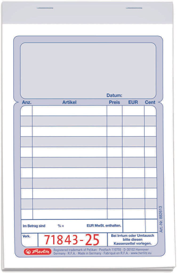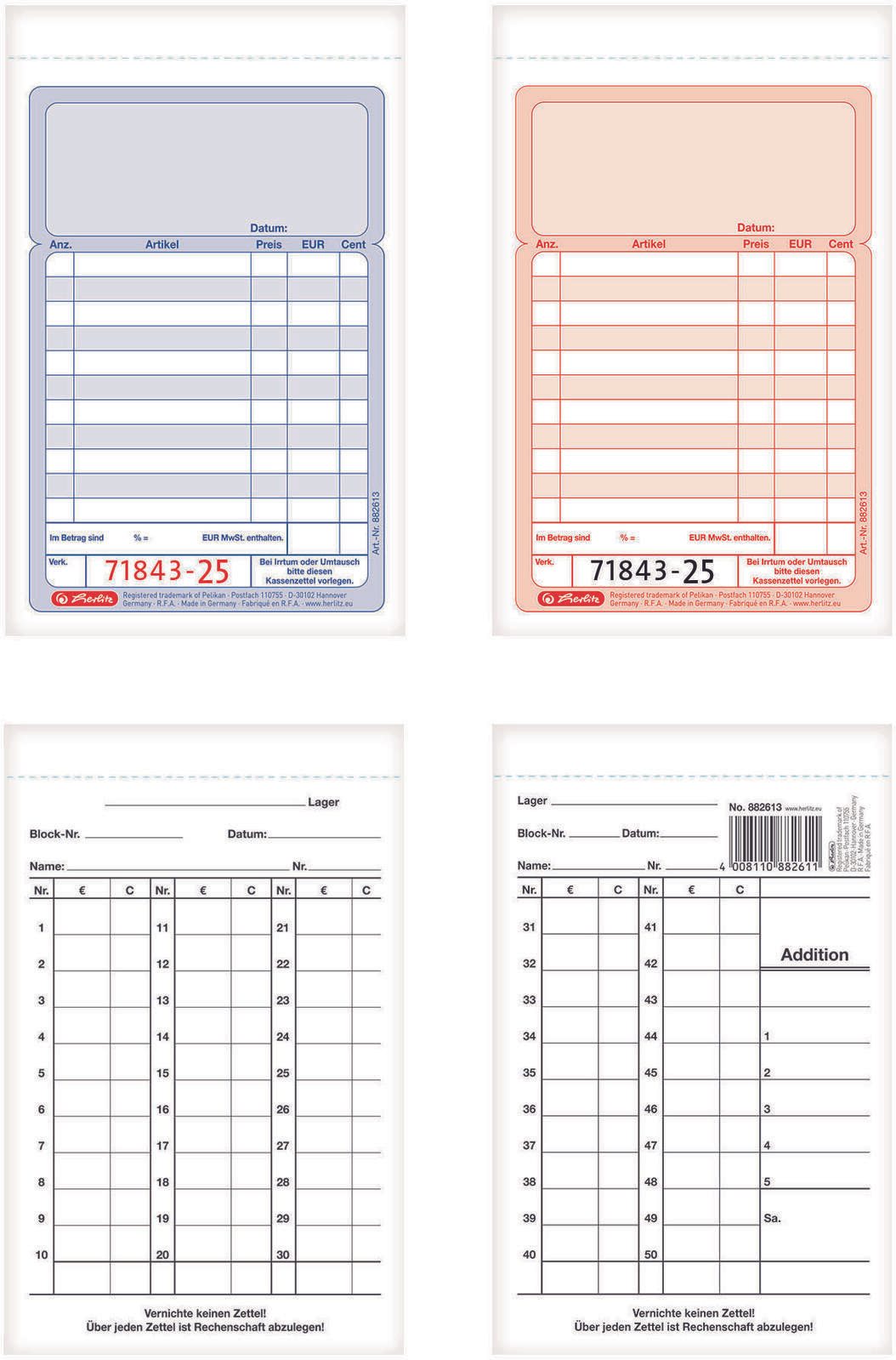 herlitz Formularbuch Kassenblock mit Additionsblatt, mit fortlaufenden Nummern 882613 DIN A6 2x 50 Seiten