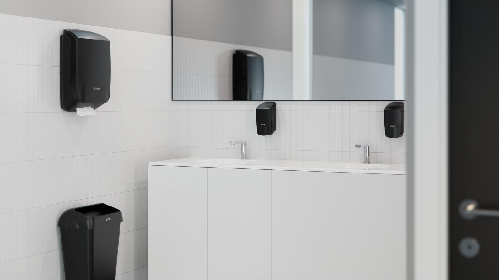 KATRIN Papierhandtuchspender in Schwarz - Wandmontage für Einzeltuchentnahme
