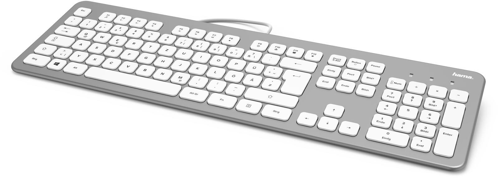 Hama Tastatur kabelgebunden KC-700 silber, weiß