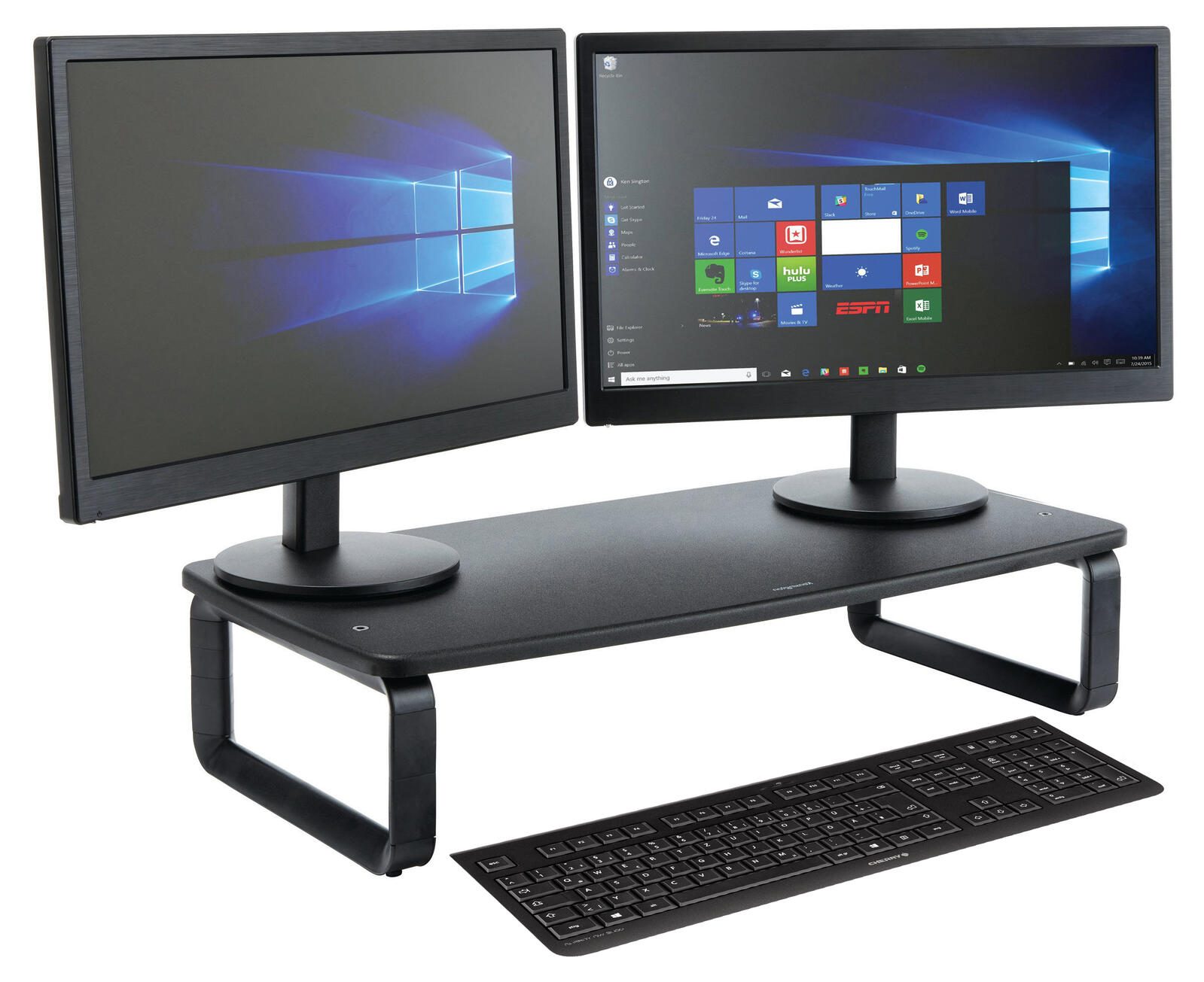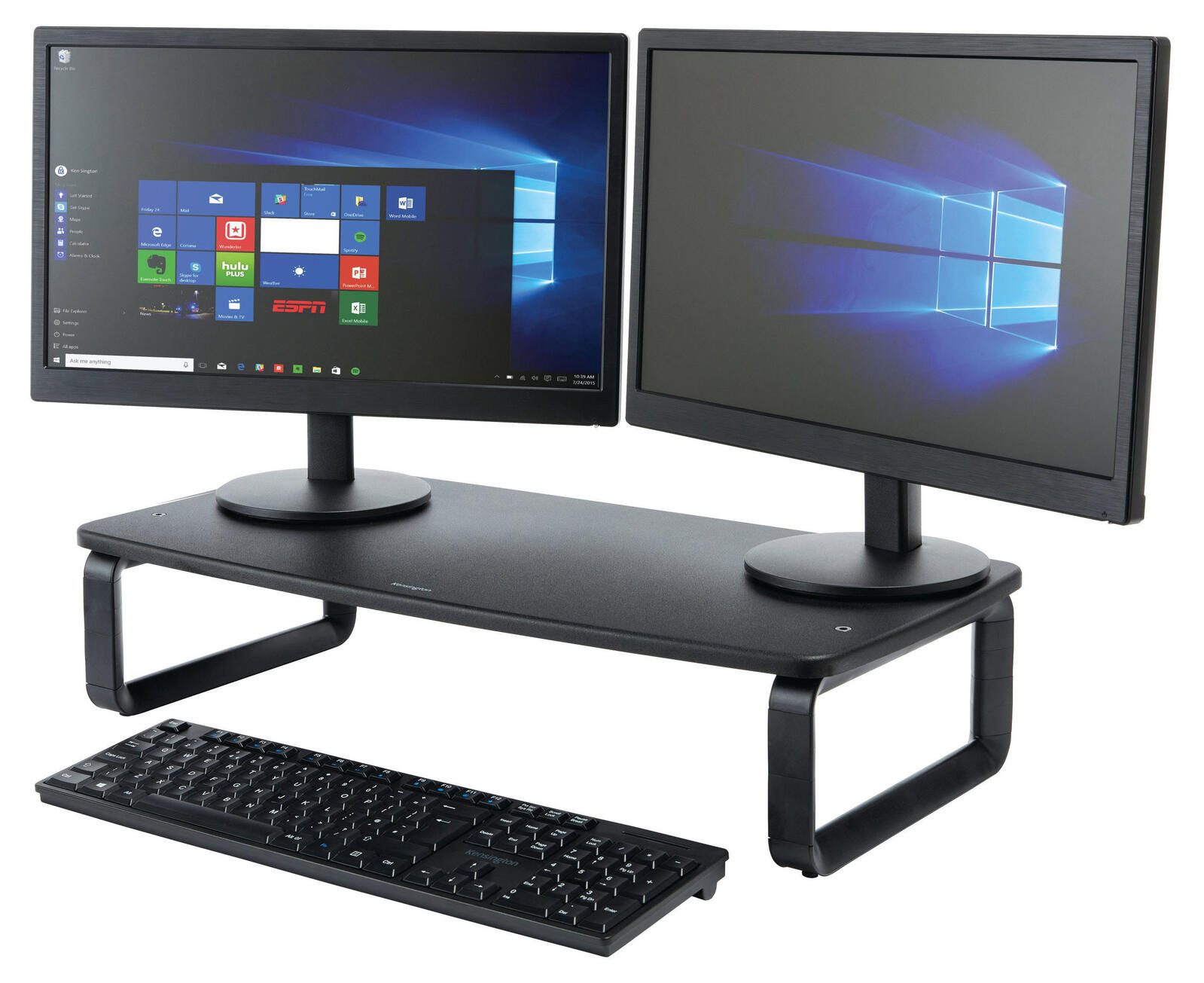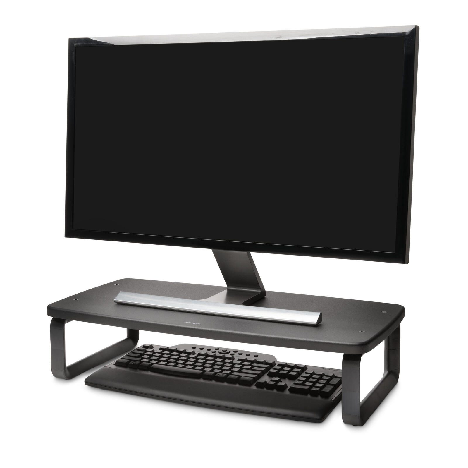 Der Kensington Monitorständer SmartFit in elegantem Schwarz ist die ideale Lösung für eine ergonomische Arbeitsplatzgestaltung. Hergestellt aus robustem Kunststoff und Holz, vereint dieser Ständer Funktionalität und ansprechendes Design. Mit einer Tragkraft von bis zu 18 kg eignet sich der Monitorständer für Bildschirme mit einer Größe von bis zu 68,6 cm (27 Zoll). Dies macht ihn zu einer vielseitigen Wahl für sowohl Büro- als auch Heimarbeitsplätze. Die Abmessungen von 61,0 x 30,0 x 5,9/9,7/13,5 cm ermöglichen eine flexible Anpassung an Ihre individuellen Bedürfnisse. Dank der verschiedenen Höhenoptionen können Sie die optimale Position für Ihren Monitor einstellen, was zu einer besseren Körperhaltung und weniger Nacken- und Rückenschmerzen führt. Der Kensington Monitorständer ist nicht nur funktional, sondern trägt auch zur Aufgeräumtheit Ihres Arbeitsplatzes bei, indem er Platz für andere wichtige Utensilien schafft. Die Montage des Ständers ist unkompliziert und erfordert nur wenige Schritte, sodass Sie schnell von den Vorteilen profitieren können. Mit einem Gewicht von 1,78 kg ist der Ständer leicht zu transportieren und kann problemlos an verschiedenen Orten eingesetzt werden. Die Kombination aus modernem Design und praktischen Eigenschaften macht den Kensington Monitorständer SmartFit zu einer ausgezeichneten Wahl für alle, die Wert auf Ergonomie und Stil legen. Nutzen Sie die Vorteile eines aufgeräumten und gut organisierten Arbeitsplatzes, um Ihre Produktivität zu steigern.Technische Daten