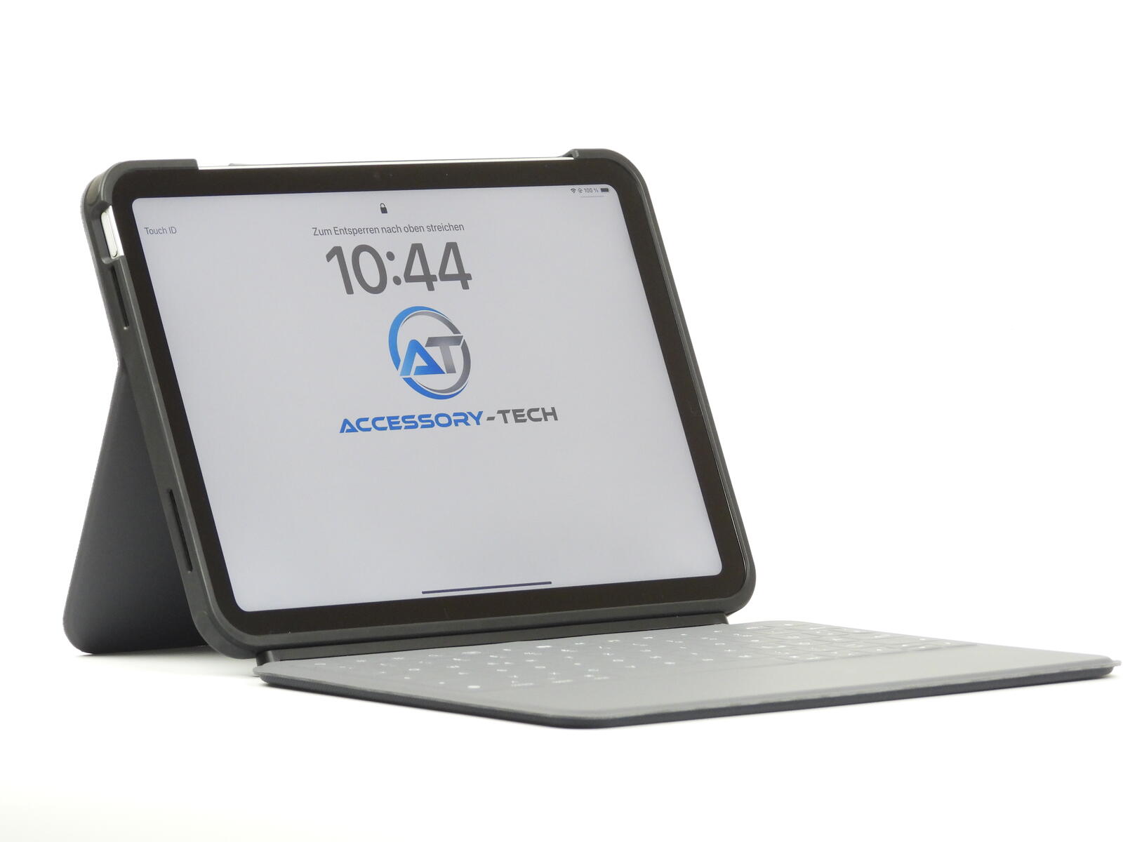 @keycase Smart ist eine hochwertige Tastaturschutzhülle, für Dein Apple iPad A16 (2025) 11“. Der integrierte Apple Smart Connector versorgt die Tastatur automatisch mit dem Strom des Tablets. Dadurch muss die Tastatur weder aufgeladen noch aufwendig installiert werden. Die Schutzhülle ist mit einem Stifthalter ausgestattet, in dem der @Pen Lite von Accessory-Tech und viele andere Modelle zuverlässig aufbewahrt werden können und immer griffbereit sind. Die vordere Abdeckung dient als zusätzlicher Displayschutz im geschlossenen Zustand. Beim Öffnen der Abdeckung wird das iPad automatisch ein und beim Schließen wieder ausgeschaltet. Damit wird Strom gespart, und die Nutzungszeit erhöht. Für den sicheren Transport verfügt das Case über einen magnetischen Verschluss, der ein unbeabsichtigtes Öffnen verhindert. Die Schutzhülle ist mit einem transparenten Fenster ausgestattet, durch das personalisierte Geräte voneinander unterschieden werden können. Durch den variablen Aufstellwinkel kann die Schutzhülle in einem Bereich von 0° - 80° beliebig verstellt und auf die Bedürfnisse des Nutzers angepasst werden. Die Oberfläche der Tastatur besteht aus einer wasserdichten und versiegelten Silikonschicht, welche sich leicht reinigen und desinfizieren lässt. Zusätzlich verfügt die hochwertige Tastatur über zahlreiche durchdachte Features, wie die 14 Funktionstasten, mit denen zum Beispiel die Lautstärke oder Helligkeit geregelt, bzw. das iPad gesperrt und entsperrt werden kann. Durch das integrierte Touch Pad kann das iPad komfortabel bedient werden. Die Ecken der Schutzhülle wurden besonders verstärkt. Damit übersteht das iPad auch größere Stürze unbeschadet. Erhöhte Seitenkanten sorgen für einen zusätzlichen Displayschutz.