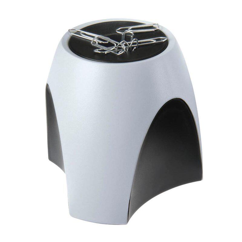 Der HAN Büroklammerspender Delta in elegantem grau/schwarz ist die perfekte Lösung, um Ordnung auf deinem Schreibtisch zu halten. Mit einem ansprechenden Design und funktionalen Eigenschaften überzeugt dieser Büroklammerspender sowohl im Homeoffice als auch im klassischen Büro. Hergestellt aus antistatischem, schwermetallfreiem Polystyrol, bietet er nicht nur eine umweltfreundliche Option, sondern schützt auch deine Büroklammern vor statischer Aufladung, die oft zu unangenehmen Problemen führen kann. Mit einer Breite von 9,5 cm und einer Höhe von 8,8 cm passt der Spender ideal auf jeden Schreibtisch und nimmt dabei nur wenig Platz in Anspruch. Das stilvolle Farbdesign in grau/schwarz fügt sich harmonisch in jede Büroeinrichtung ein und sorgt für einen modernen Look. Die Serie Delta von HAN steht für Qualität und Funktionalität, und dieser Büroklammerspender ist da keine Ausnahme. Der praktische Spender ermöglicht einen schnellen und einfachen Zugriff auf deine Büroklammern, wodurch du Zeit sparst und deine Arbeitsabläufe optimierst. Egal, ob du viele Dokumente sortieren musst oder einfach nur eine schnelle Lösung für deine Büroklammern suchst, der HAN Büroklammerspender Delta ist die ideale Wahl. Vertraue auf die bewährte Qualität von HAN und erlebe, wie dieser Spender deinen Arbeitsplatz aufwertet und dir hilft, organisiert zu bleiben.Technische Daten