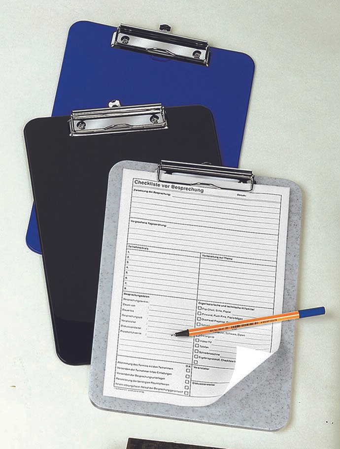 Das WEDO Klemmbrett DIN A4 in einem ansprechenden blauen Farbton ist die ideale Lösung für alle, die ihre Unterlagen stilvoll und praktisch organisieren möchten. Mit seinen kompakten Maßen von 22,7 x 31,7 cm bietet es ausreichend Platz für bis zu 50 Blatt, sodass du auch umfangreiche Dokumente sicher und ordentlich aufbewahren kannst. Hergestellt aus hochwertigem Kunststoff, vereint dieses Klemmbrett Langlebigkeit und ein modernes Design. Die robuste Bauweise sorgt dafür, dass das Klemmbrett auch bei häufigem Gebrauch seine Form und Funktionalität behält. Besonders praktisch ist die Klemme aus nickelbeschichtetem Metall, die an der kurzen Seite des Klemmbretts angebracht ist. Diese Anordnung ermöglicht ein schnelles und einfaches Befestigen deiner Unterlagen, ohne dass sie verrutschen oder beschädigt werden. Das WEDO Klemmbrett ist speziell für das Format DIN A4 konzipiert, was es zu einem unverzichtbaren Begleiter für Schule, Büro oder unterwegs macht. Egal, ob du Notizen während einer Besprechung machst, Präsentationen vorbereitest oder einfach nur deine Gedanken festhalten möchtest, dieses Klemmbrett bietet dir die nötige Unterstützung. Die stilvolle blaue Farbe verleiht dem Klemmbrett nicht nur eine ansprechende Optik, sondern hebt sich auch angenehm von anderen Schreibutensilien ab. Mit dem WEDO Klemmbrett hast du nicht nur ein funktionales, sondern auch ein modisches Accessoire, das in keiner Schreibtischschublade fehlen sollte.Technische Daten