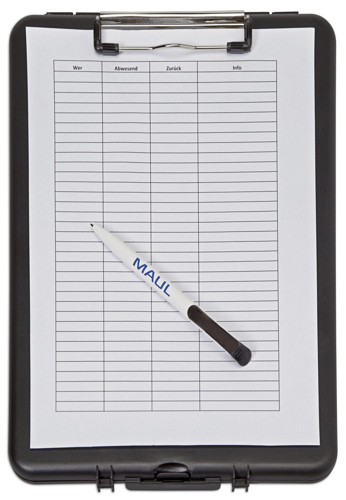 Die schlichte schwarze Farbe verleiht dem Klemmbrett eine zeitlose Eleganz und macht es zu einem perfekten Accessoire für professionelle Umgebungen. Ob bei Präsentationen, Meetings oder im Unterricht – das MAUL Klemmbrett sorgt dafür, dass deine Unterlagen stets gut organisiert und griffbereit sind. Setze auf Qualität und Funktionalität mit dem MAUL Klemmbrett DIN A4 schwarz und erlebe die Vorteile eines durchdachten Designs, das dir im Alltag hilft, den Überblick zu behalten.